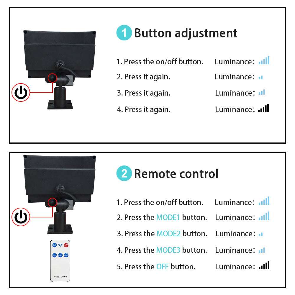 High quality lighting106 LED solar lights with 120° detection and lighting angle, covering more lighting area, providing super bright lighting for wide area. It creates a bright and safe environment for passersby even at night.