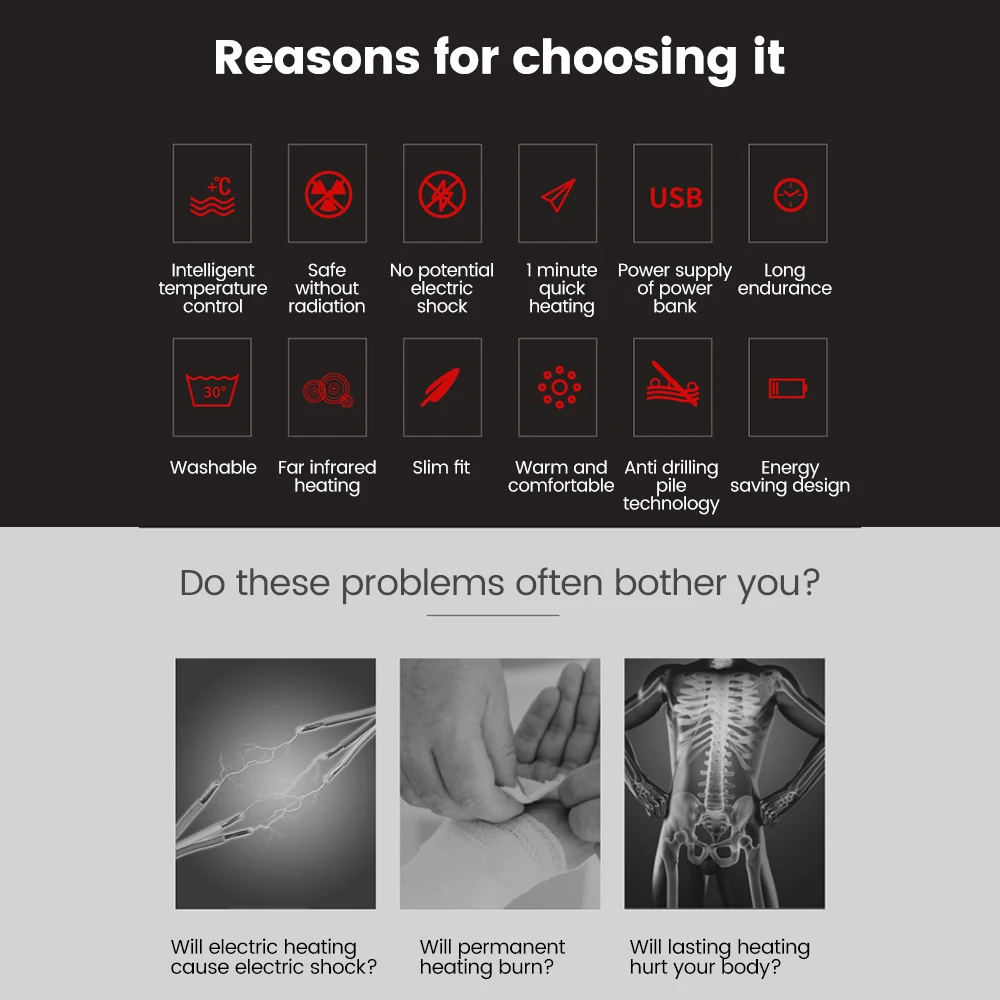 4. Wide range of applications: This heated vest is ideal for outdoor skiing, winter fishing, mountain biking, biking, camping, snow hiking, hunting, outdoor attendance, winter streets, daily office, etc.
