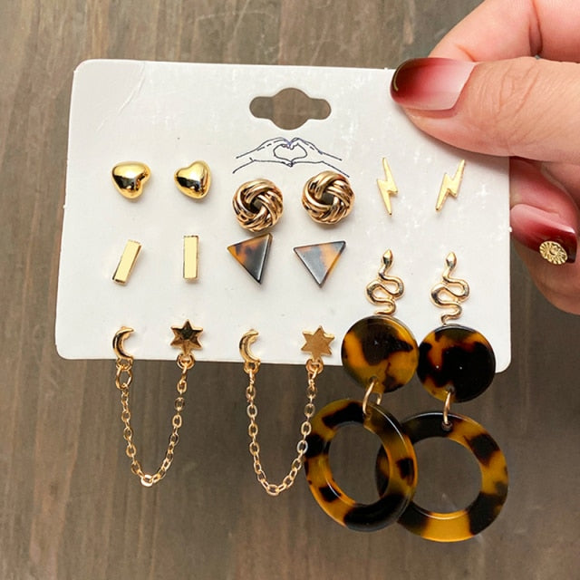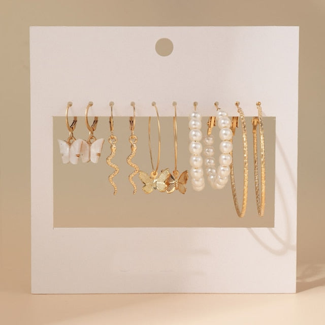 Bohemian Gold Snake Butterfly Drop Earrings Set For Women Pearl Acrylic Dangle Earrings Trend Set of Earrings Jewelry