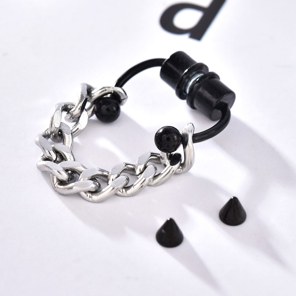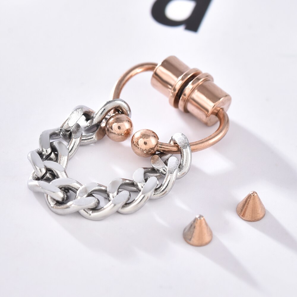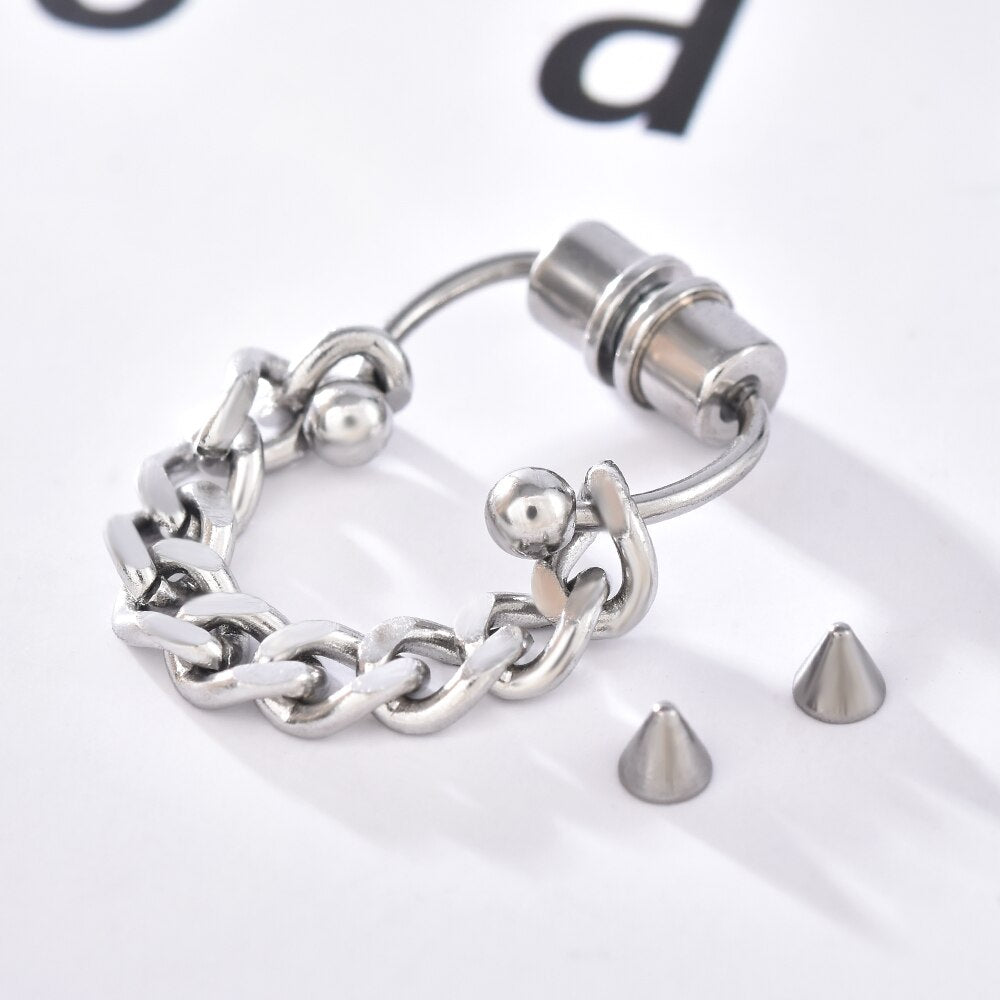 This nose ring is not only stylish and edgy, but it also adds a touch of punk rock to your look. Its geometric shape and stainless steel construction give it a unique and eye-catching appeal. Whether you're going for a bold and daring look or simply want to add some edge to your style, this nose ring is the perfect accessory.