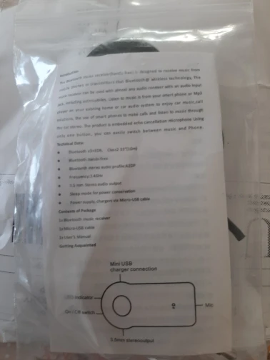 - Total weight: 25g (Bluetooth receiver + metal adapter + wire + manual + PP bag packaging)