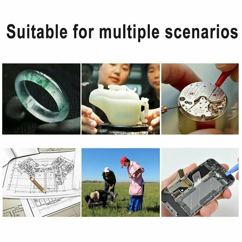 Suitable for examining and reading fine prints in newspapers, documents, maps, coins, stamps, electronic parts, jewellery, photos, and pill bottles, or repair work for clock, watch, cellphone & etc.