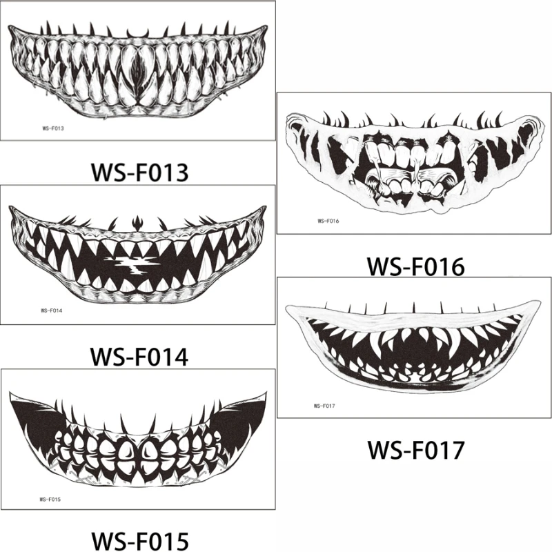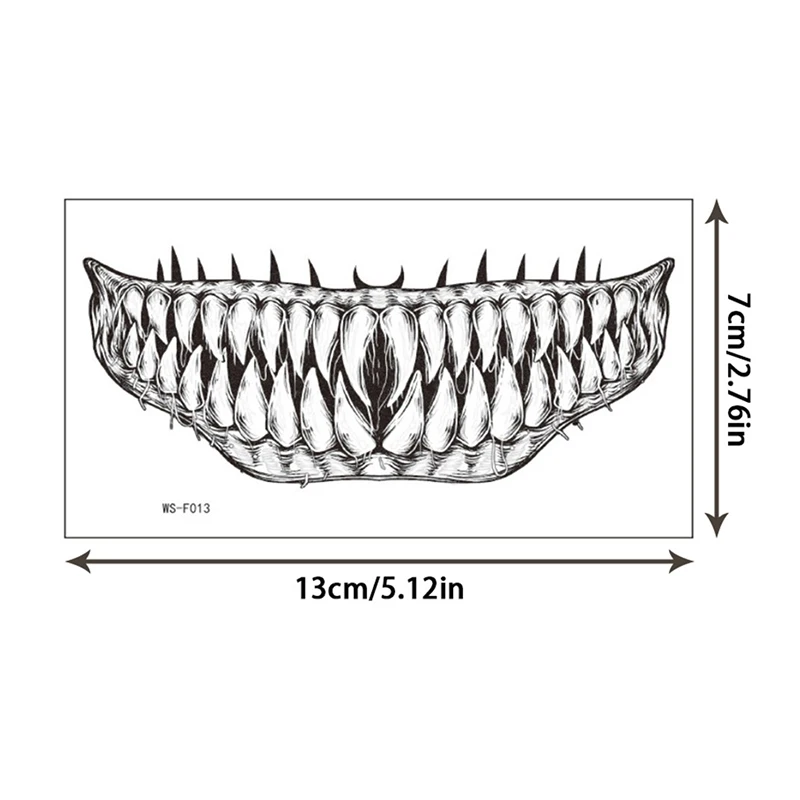 Halloween Tattoo Sticker Face Sticker Mouth Teeth Tattoo Sticker Waterproof Dark Wind Funny Makeup Temporary Tattoo