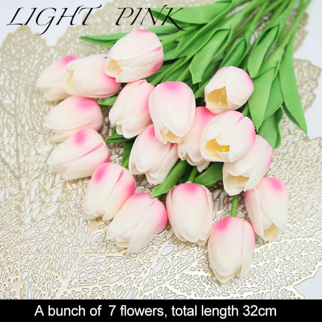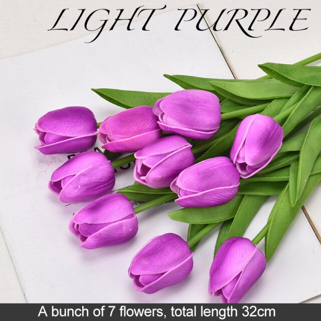 This 7-piece artificial flower set is the perfect addition to any wedding decoration, party or home decor. Made with high-quality PU material, these tulips and calla lilies are incredibly lifelike and will add a touch of elegance to any room. The set includes 10 beautiful flowers, making it easy to create a stunning bouquet or centerpiece. Whether you're looking to add some color to your hotel room or want to create a romantic atmosphere for a special occasion, this artificial flower set is the perfect choice. With its realistic look and feel, it's hard to tell that these flowers aren't real. So why wait? Order your set today and start enjoying the beauty of these gorgeous flowers!