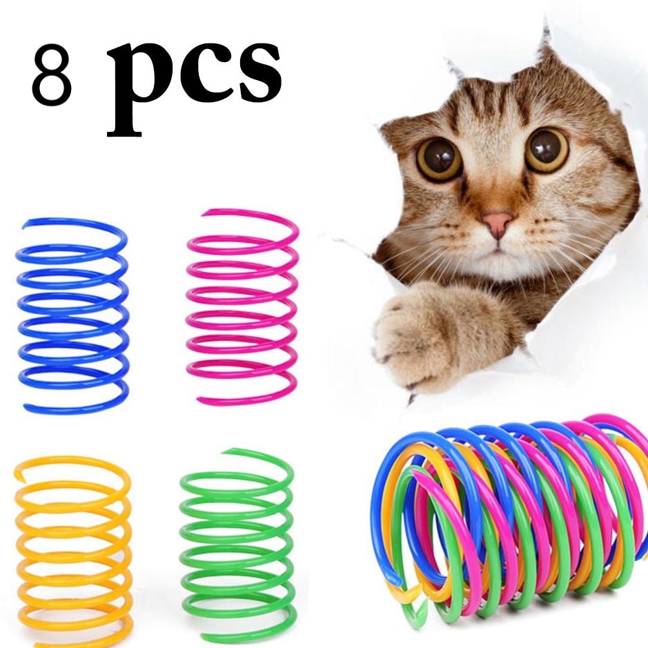 8 pieces Cat Colorful Spring Toy Creative Plastic Flexible Cat Coil Toy Cat Interactive Toy Cat Funny Toy Pet Favor Toy Pet Product