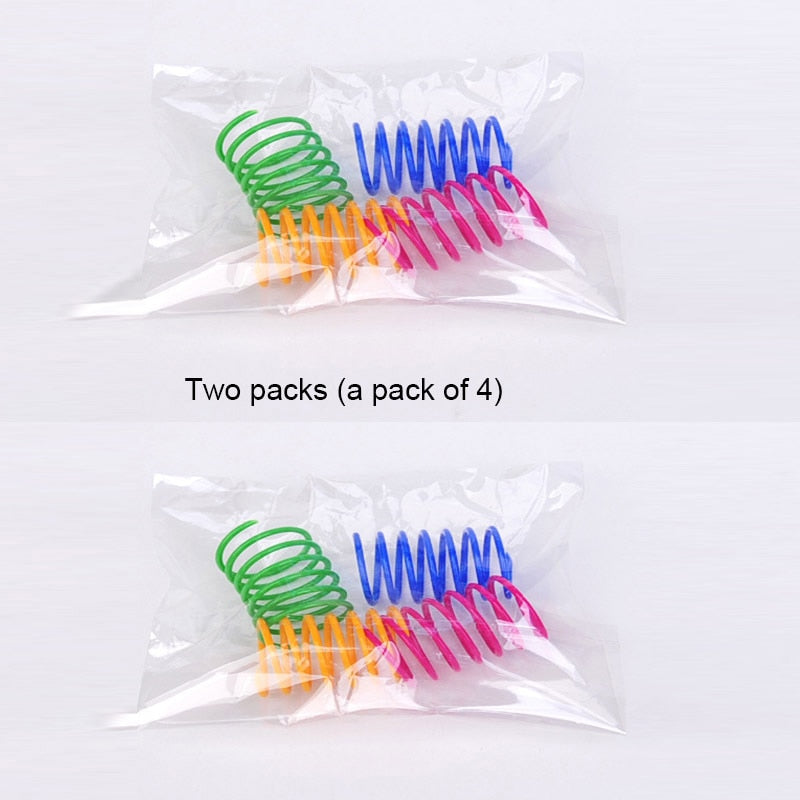 This Cat Colorful Spring Toy is the perfect addition to your feline friend's toy collection. Made of durable plastic, this creative and flexible coil toy will keep your cat entertained for hours. The interactive design allows for your cat to play and chew, making it a great chew toy. This cat funny toy comes in random colors and is a pet favor toy that your cat will love. Measuring at a single size of 4.5cm in length and 2.5cm in diameter, this package includes 4 or 8 cat toys. Get your pet product today and watch your cat have a blast with this interactive toy.
