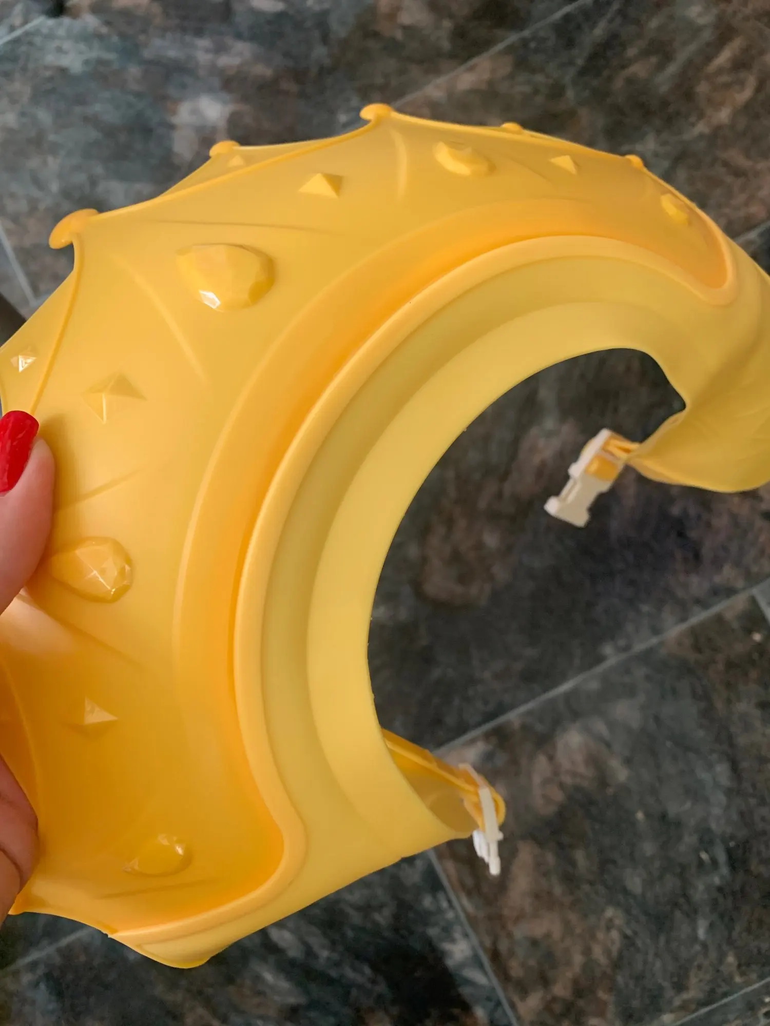5. This ergonomically bath visor helps protect baby's face, eyes and ears from shampoo and water. Your little ones will be able to play with toys while showering whithout any fear. Leaving your hands free to play with your child.