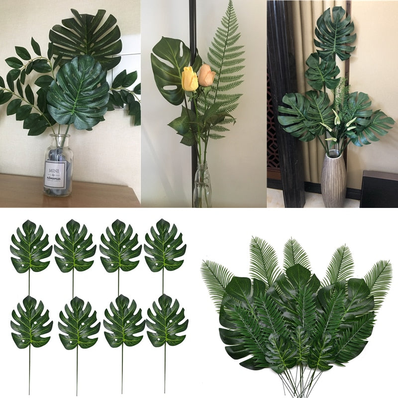 10-20 Pcs Artificial Plants Tropical Monstera Palm Leaves Simulation Leaf For Hawaiian Theme Party Decor Home Garden Fake Leaves