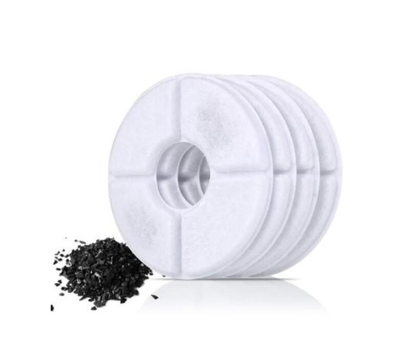 The circulation filtration system of this pet fountain uses a replaceable round filter to purify water and remove hair, dirt, and food particles. The multiple layers of cotton, coconut-activated carbon, and ion exchange resin in the filter provide fresh and clean water for your furry companion.