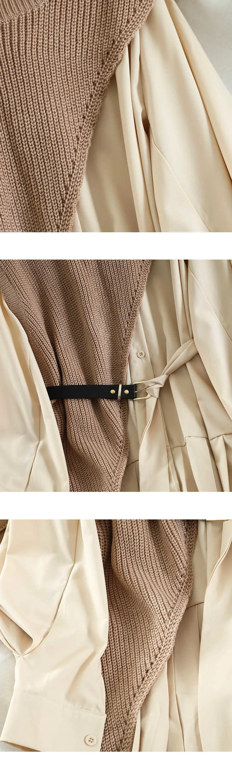 Autumn Two Piece Set Outfits For Women Streetwear Pleated Short Mini Dress Irregular Knitted Vest Fashion MK902