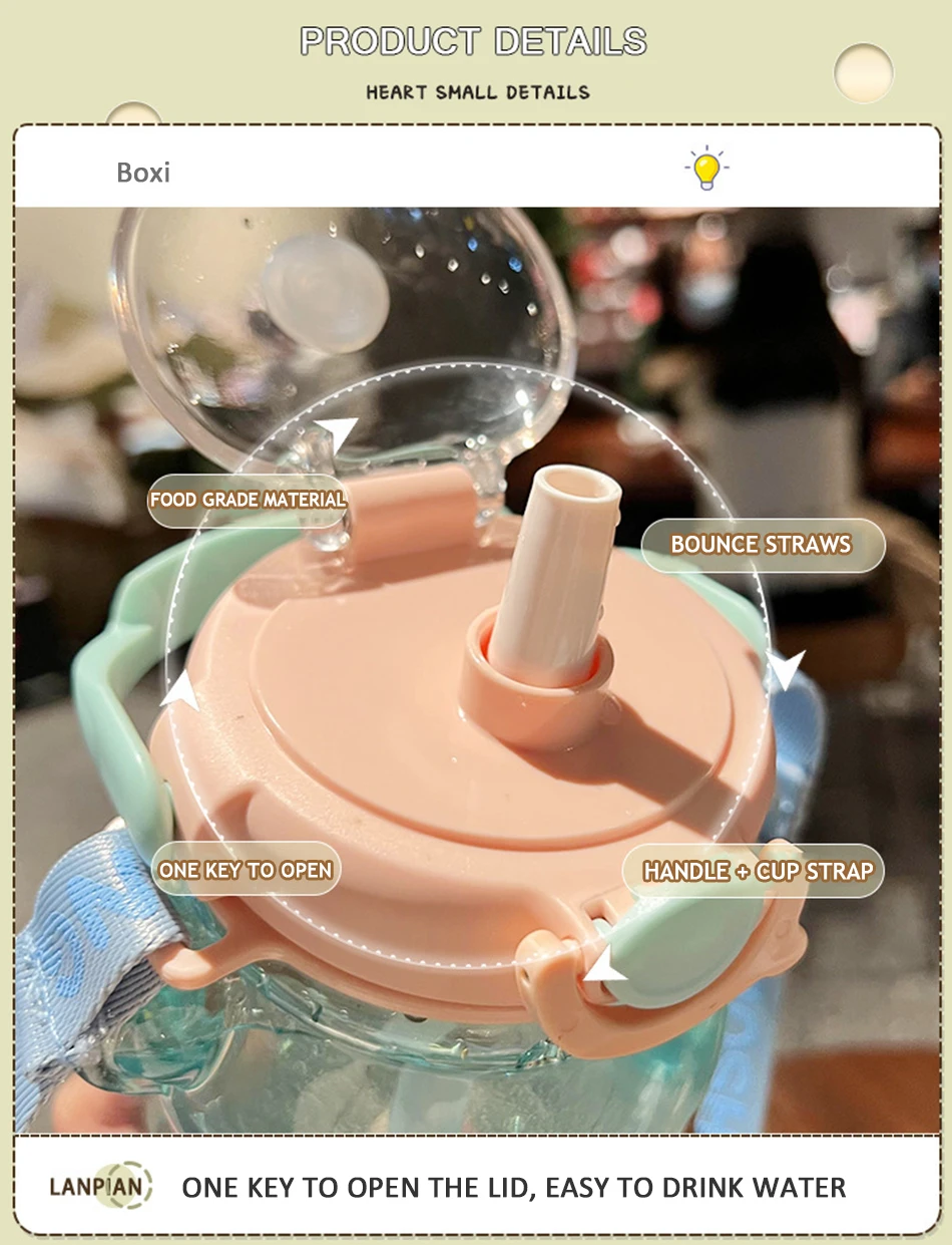 Introducing our Kawaii Bear Plastic Water Bottle With Straw, the perfect portable and cute accessory for kids and girls to enjoy their favorite beverages during the summer. This large capacity bottle is designed to make drinking water more appealing and enjoyable.