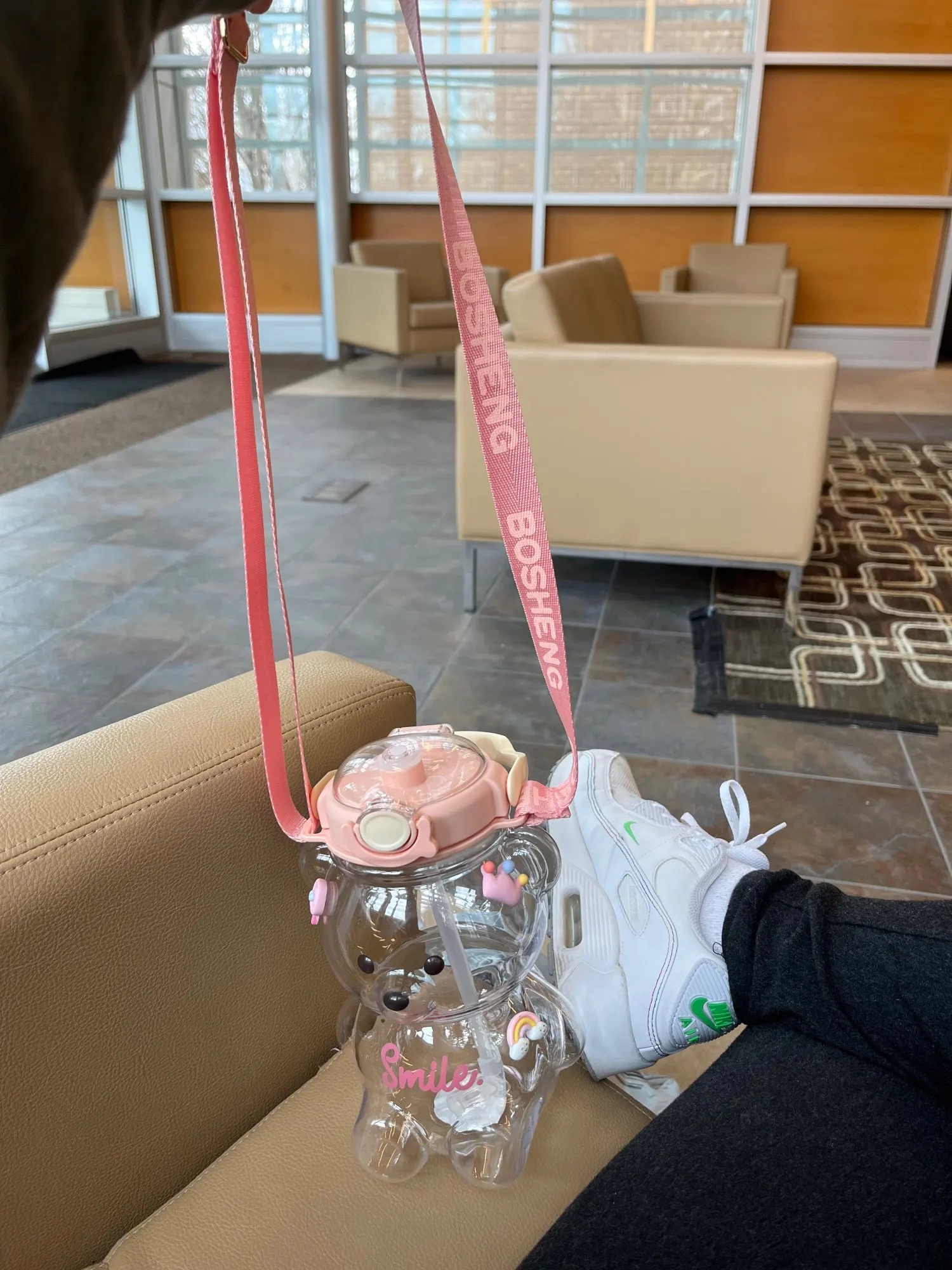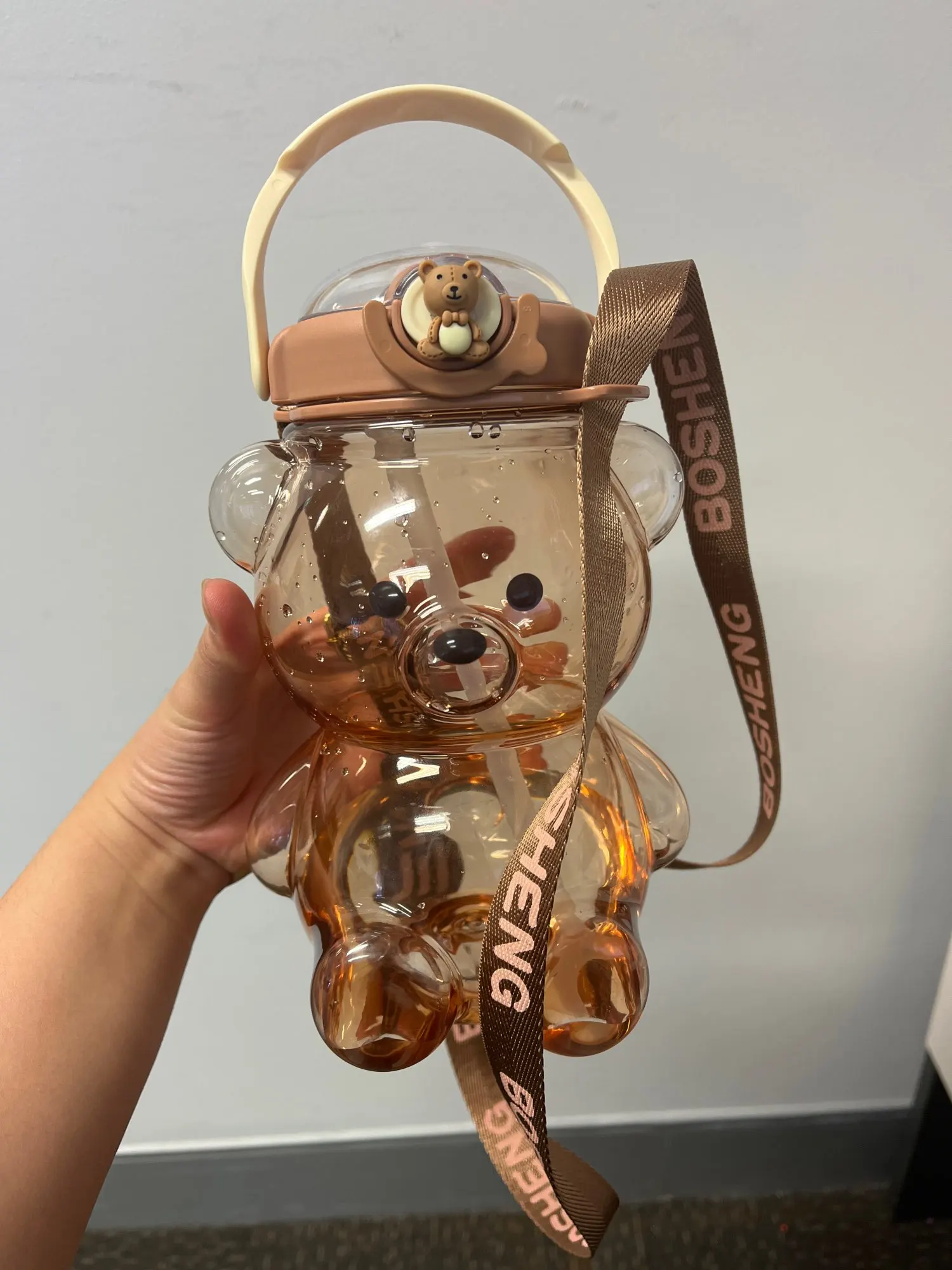 Not only is this water bottle functional, but it also adds a cute and fashionable touch to any outfit. Whether you're at school, the gym, or out and about, this adorable bear-shaped bottle will catch everyone's attention. It can even double as a phone holder, adding versatility to its functionality.