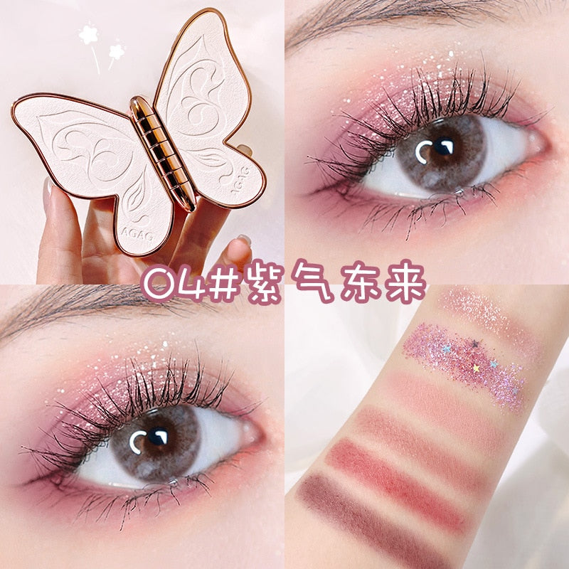 6 colors Eyeshadow palette butterfly Eye shadow lucky Koi Pearl Sequins Glitter Matte Makeup plate glitter eyeshadow