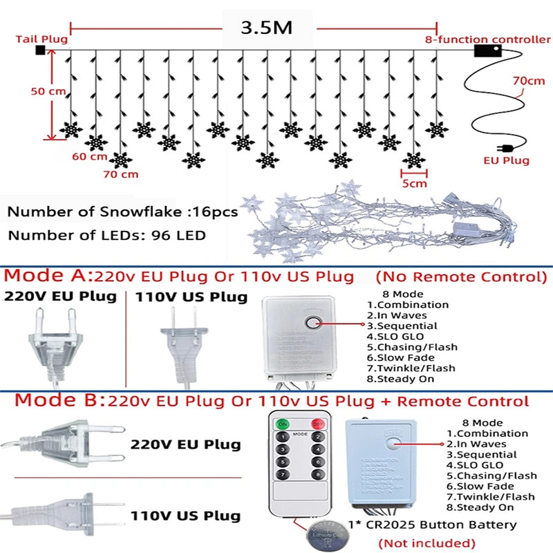 Looking to add some festive cheer to your home this Christmas season? Look no further than our 3.5M Christmas Light Led Snowflake Curtain Icicle Fairy String Lights Outdoor Garland!