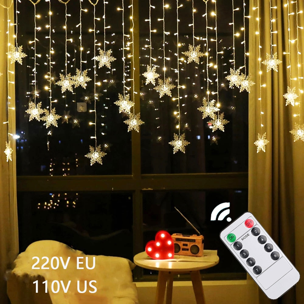 3.5M Christmas Light Led Snowflake Curtain Icicle Fairy String Lights Outdoor Garland For Home Party Garden New Year Decoration