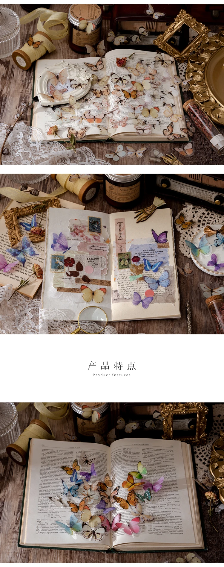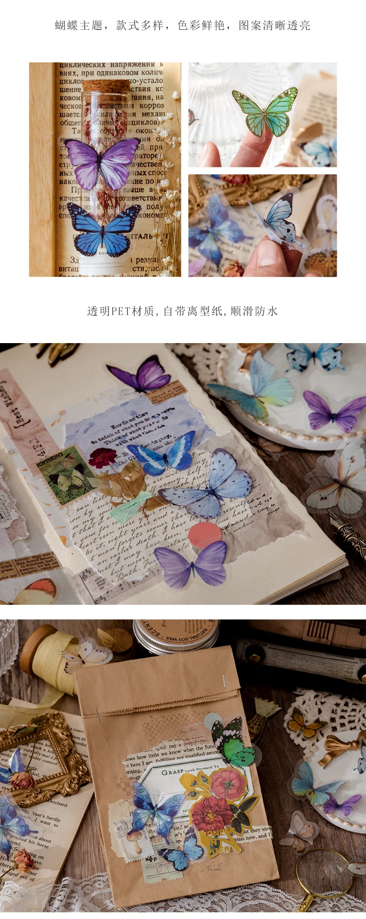 40 Pieces/Pack Colorful Butterfly Retro Art Handbook Diary DIY Decoration PET Sticker for Album Notebook