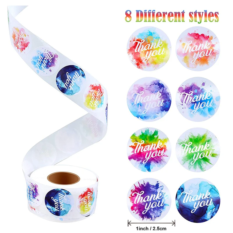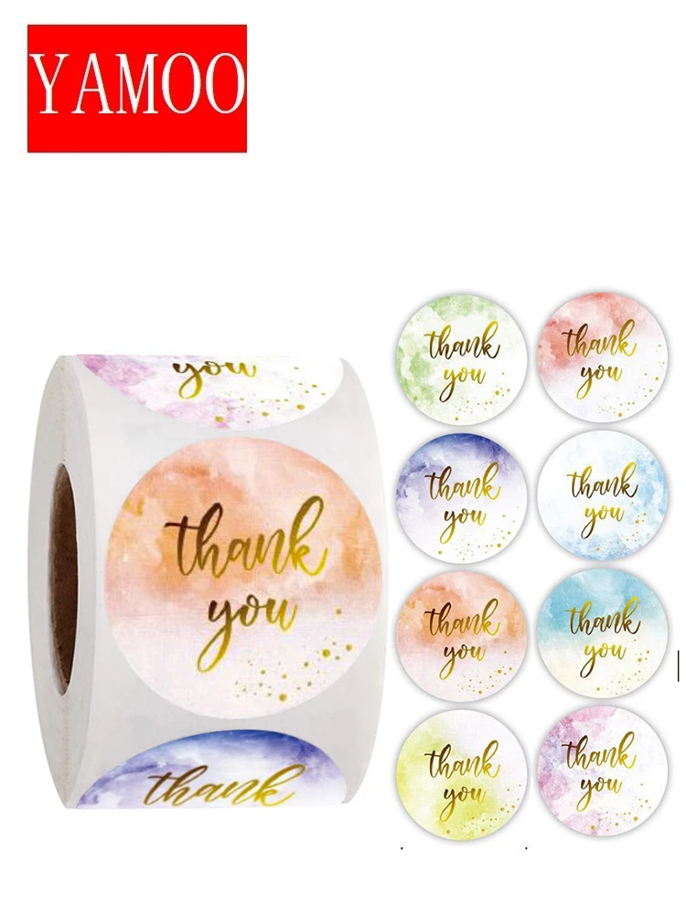 Colorful round "thank you" sticker seal label paper roll packaging decoration handmade thank you sticker 50-500pcs