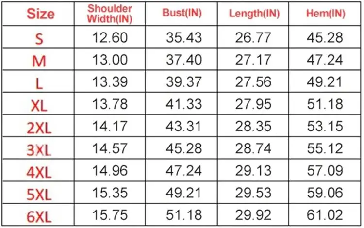 - Size: S,M,L,XL,XXL,3XL,4XL,5XL,6XL