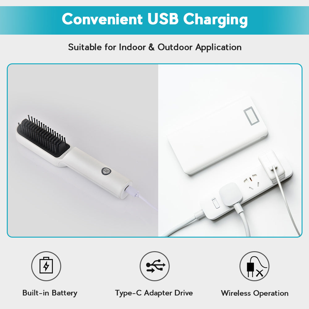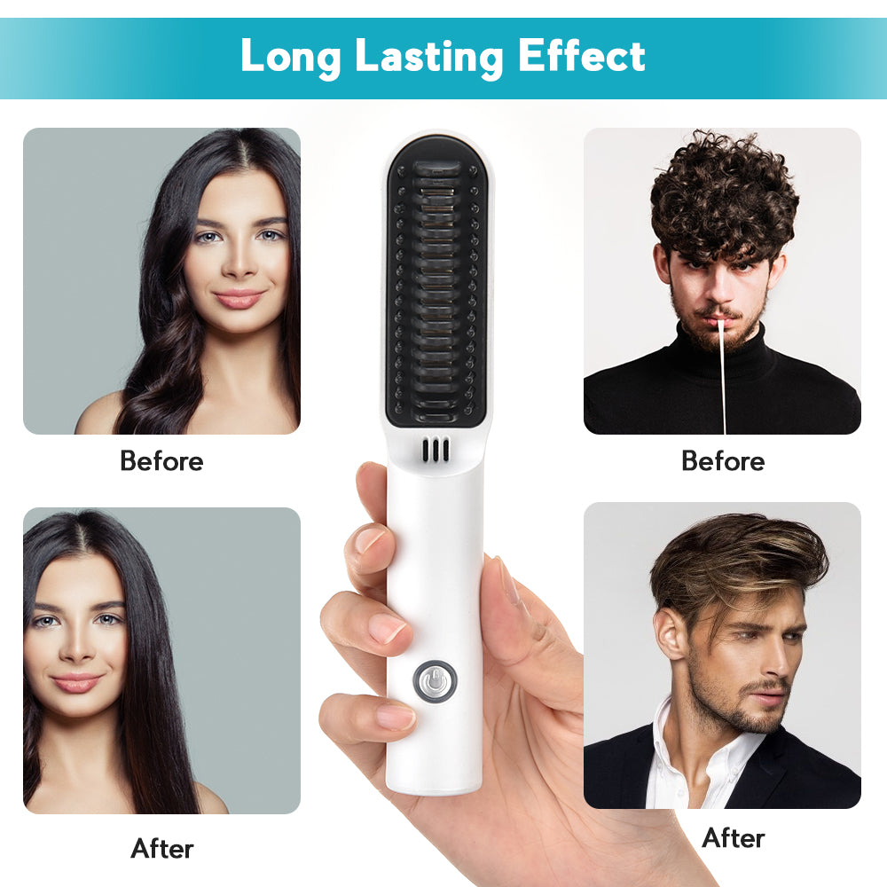 Looking for a versatile hair styling tool for your barbershop? Look no further than our Cordless Curling and Straightening Comb! Made with high-quality tourmaline ceramic, this comb is not only stylish but also designed for simplicity in use.