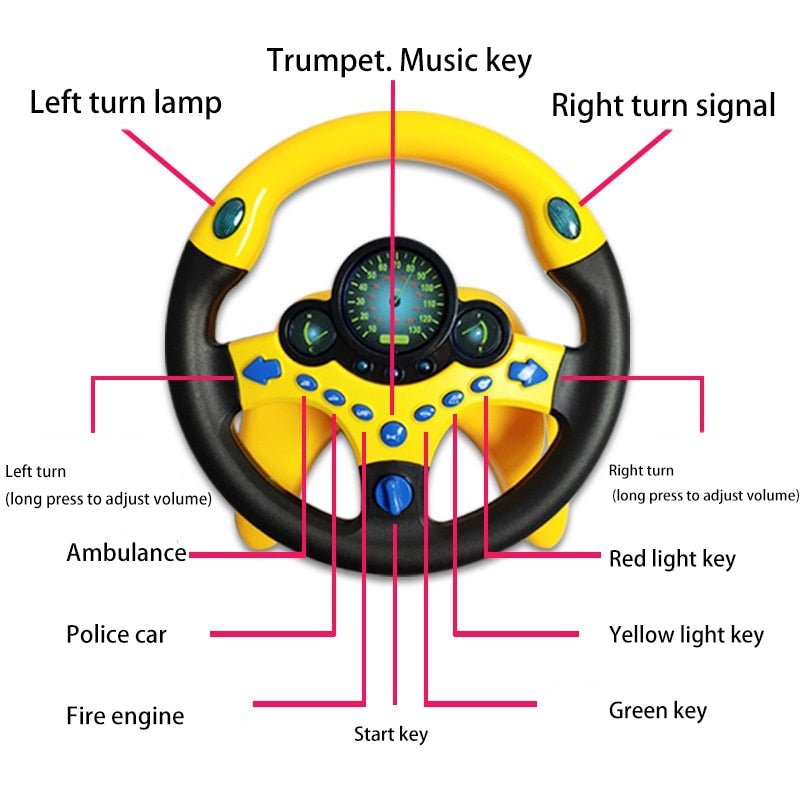 Introducing our Cute Children's Steering Wheel Toy with Light Simulation Driving Sound Music - the perfect toy for your little ones who love to pretend they're driving like mom and dad! This interactive toy is designed to provide hours of entertainment and learning for your child.
