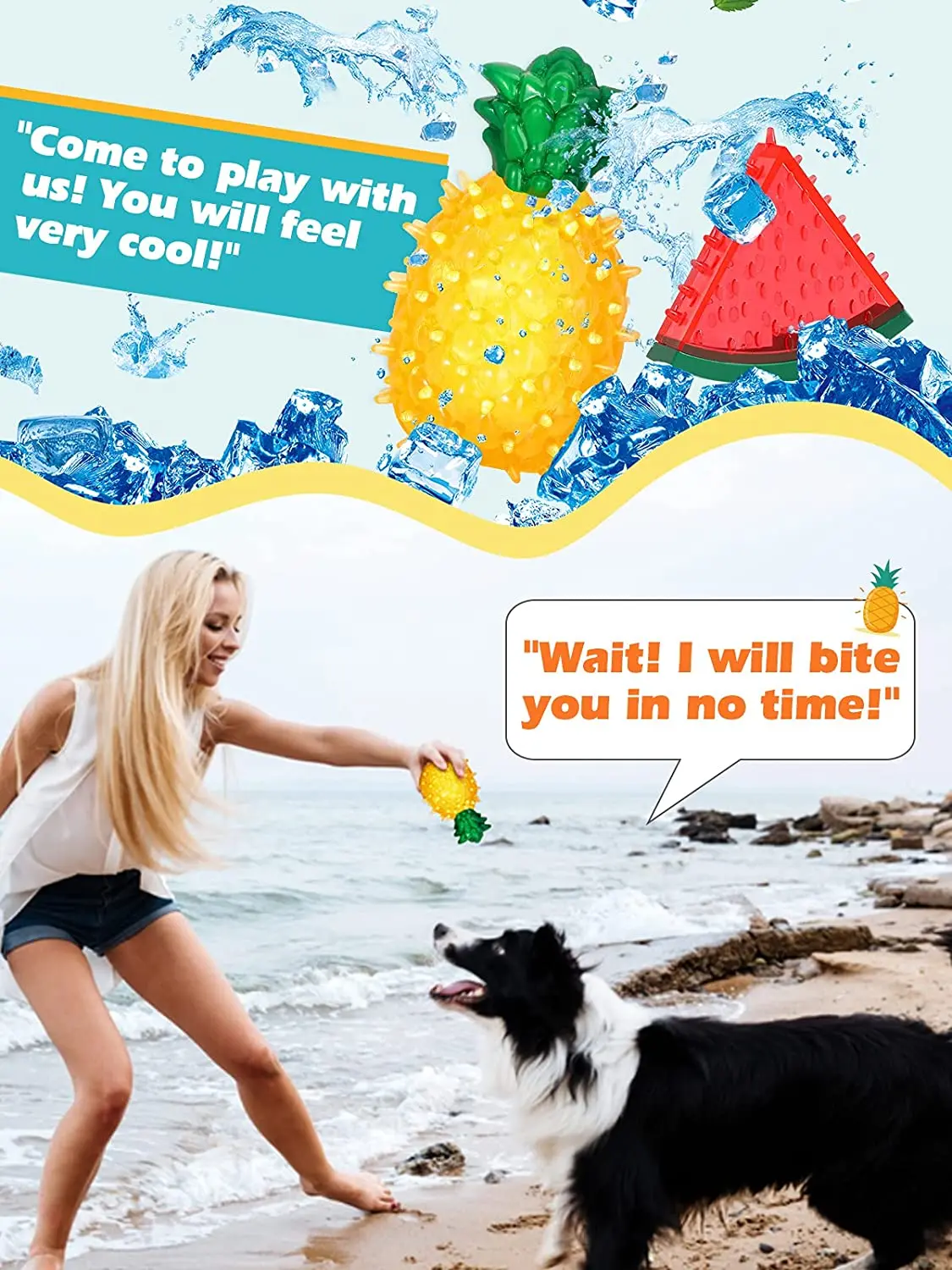 Unique design: colorful watermelon shape and pineapple shape, loud whistle implanted inside, cute and interesting, can attract dogs to play for a long time. At the same time, after an upgraded design, it can be frozen to keep your pet dog cool, and can be frozen for a long time refreshing.