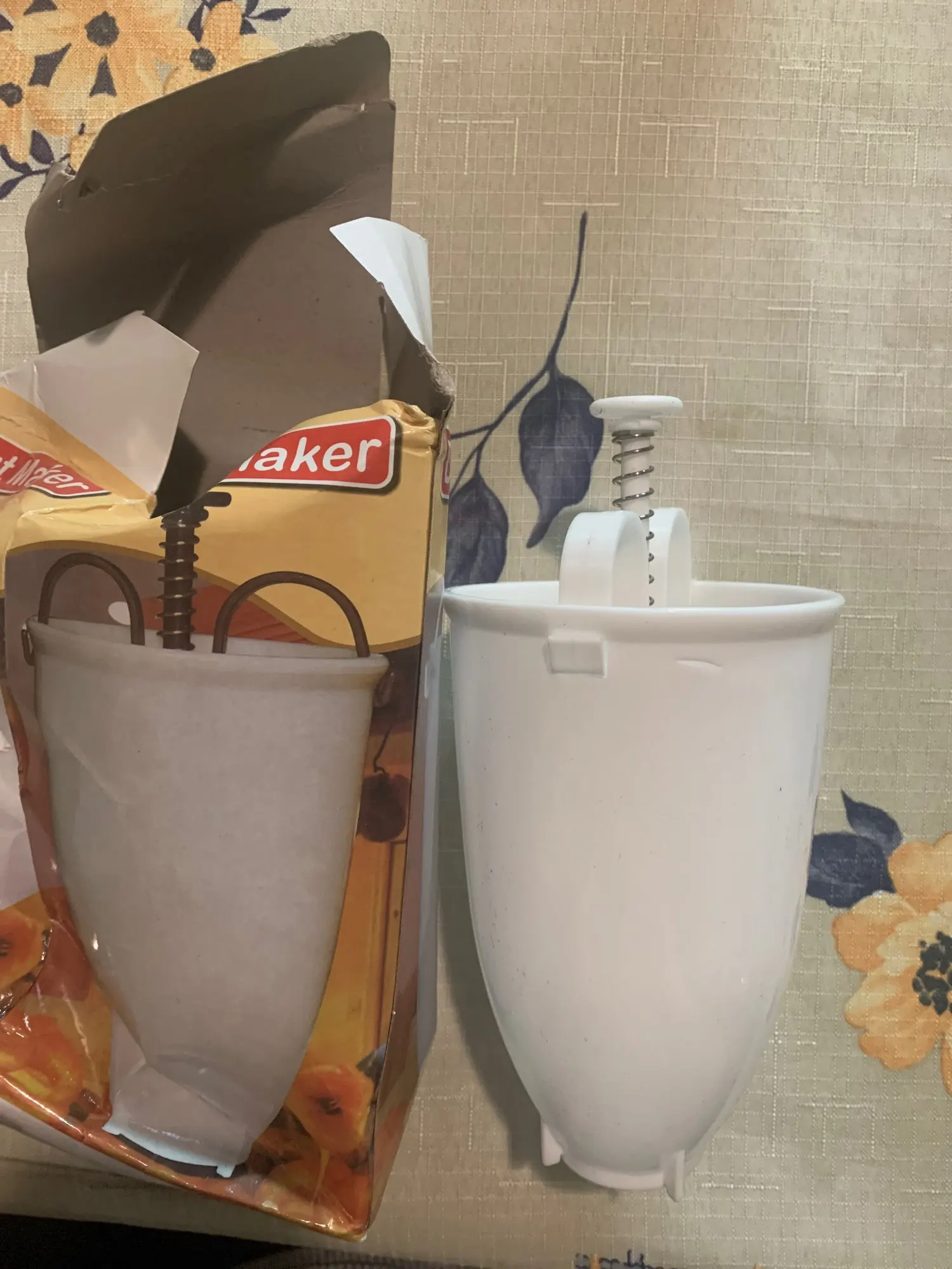 Just pour in the batter and drop in oil and cook-so simple. For perfectly shaped home-made doughnuts. Disassembles for easy cleaning
