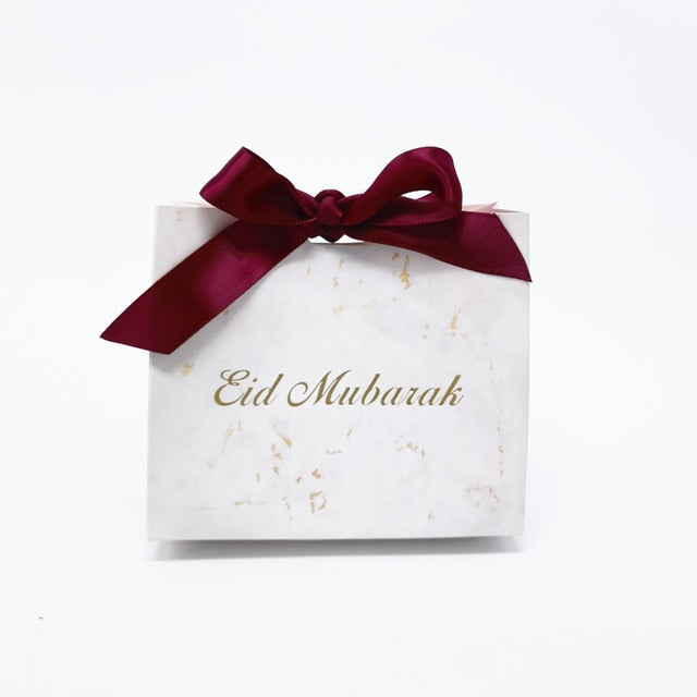 Eid Mubarak Candy Box Set Marble Paper Gift Bag ,Party Favor Gift Box, Muslim Islamic Party Supplies