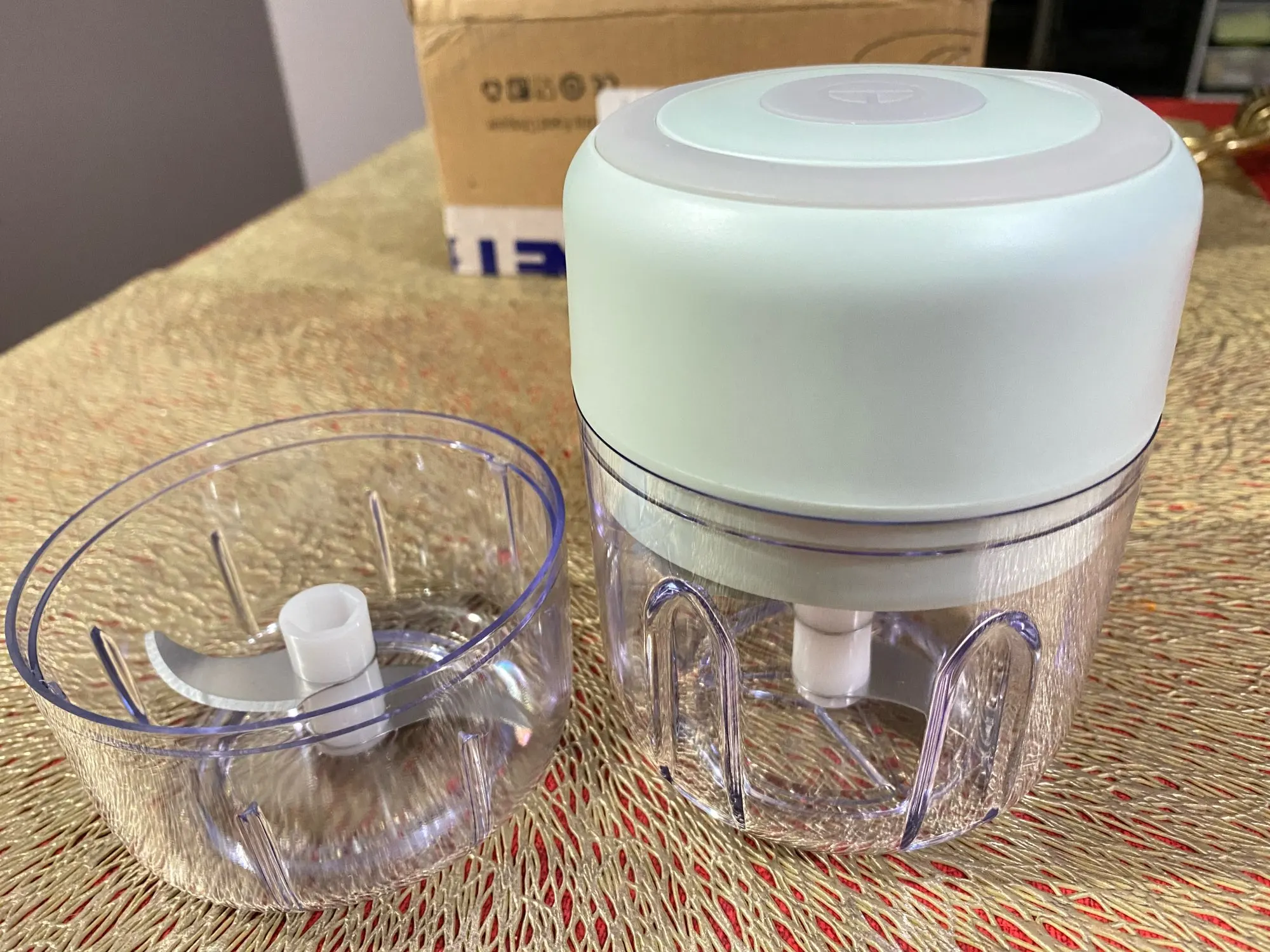 It seemed bigger in the ad, but it's 100% effective, even though it seems to have no strength. In 7 seconds it itches garlic, onion, parsley. Blades are very sharp (handle carefully). Wash and dry after use. Do not overload the Bowl, the blades are thin. The load is fast and autonomy is good. I like it being portable. I recommend the product.