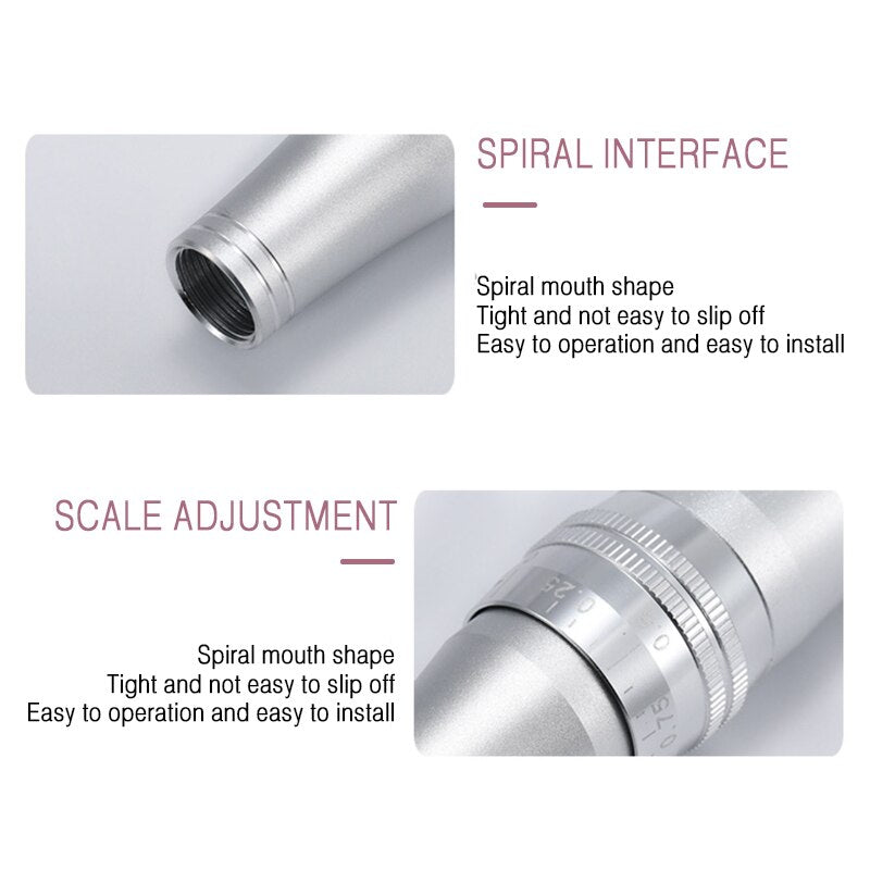 After the nanocrystal chip is mounted on the nanocrystal wafer and vertically touches the surface of the skin, it can be visually observed that there is a slight depression, and the speed, denseness, and gentleness are raised one by one. Adjust the strength according to the contact area