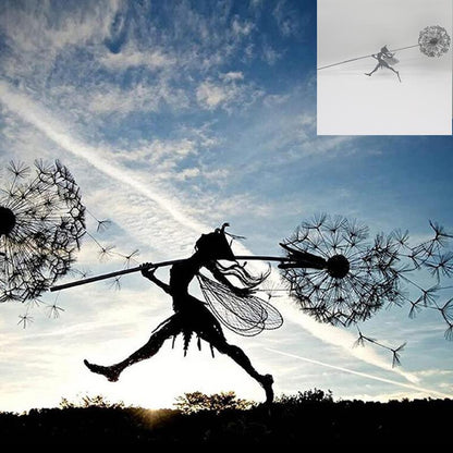 Fairy And Dandelion Dance Together Sculpture Outdoor Garden Decoration 2D Metal Yard Courtyard Art Decor Lawn Landscape Statue