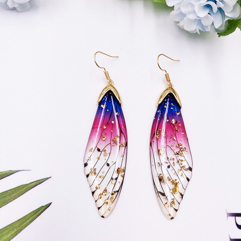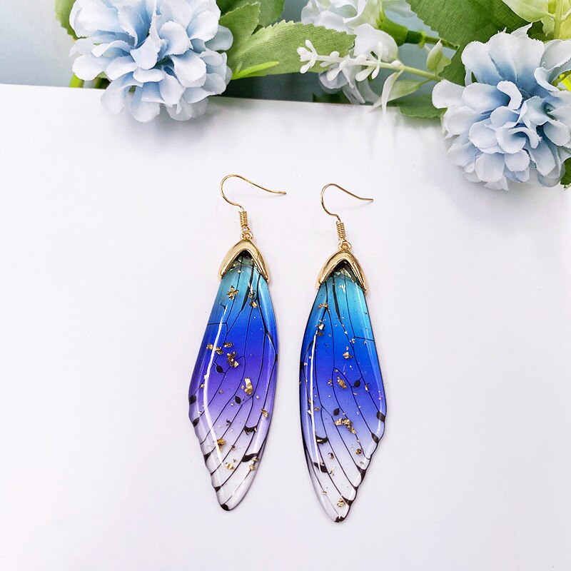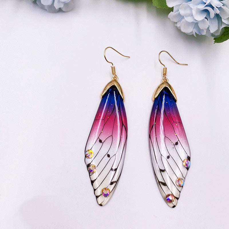 Whether you're dressing up for a special occasion or adding a touch of elegance to your everyday look, these earrings will make you stand out from the crowd. The unique design of the butterfly wings combined with the stunning gradient color pattern creates a mesmerizing effect that is sure to turn heads.