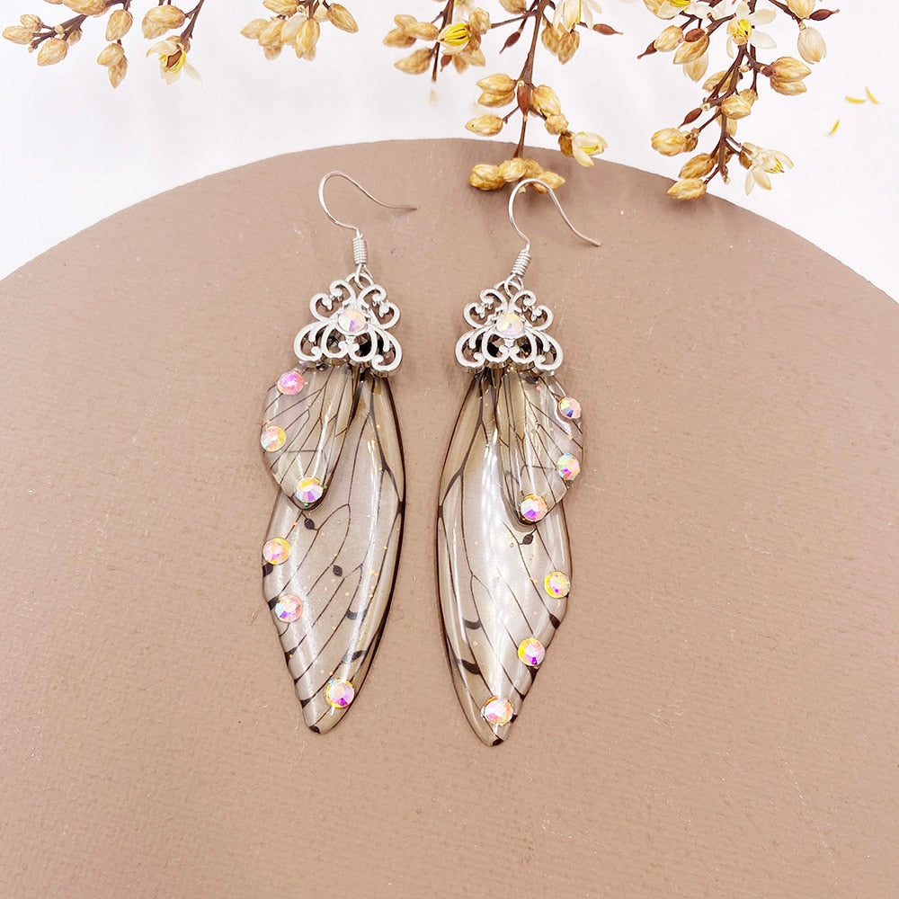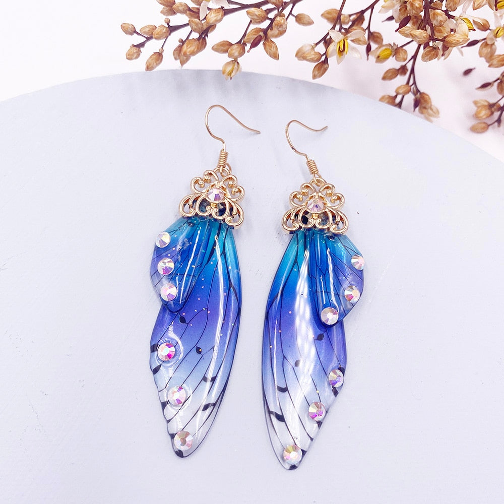 Fairy Rainbow Gradient Resin Butterfly Wing Drop Earrings for Women Rhinestone Glitter Simulation Insect Dangle Earrings Jewelry