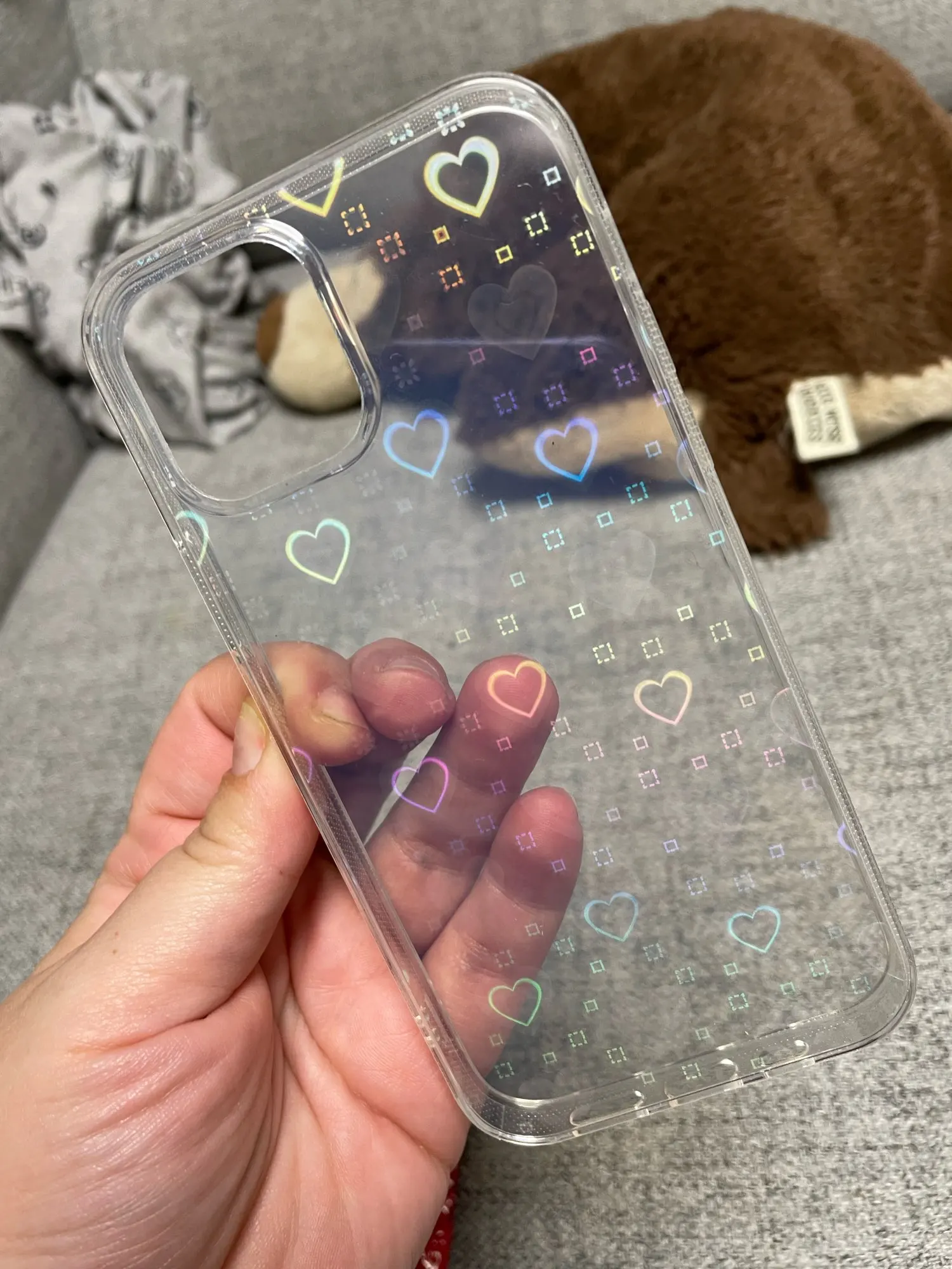 Don't settle for an ordinary phone case. Upgrade to this stunning Fashion Gradient Laser Love Heart Pattern Clear Phone Case today and add a touch of style and protection to your iPhone.