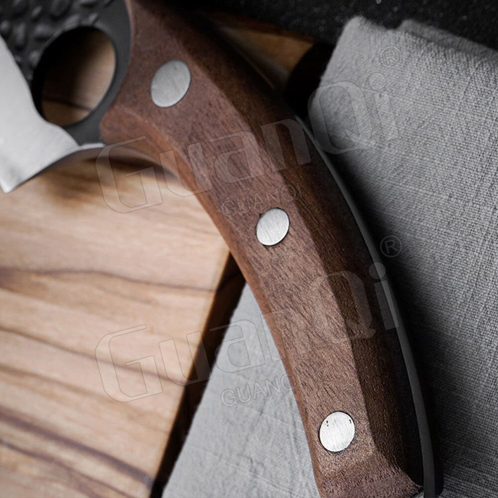 In terms of surface treatment, our knives have a smooth handling that provides a comfortable grip and enhances the overall cutting experience. The handle material is wood, adding a touch of elegance and natural beauty to the knives.