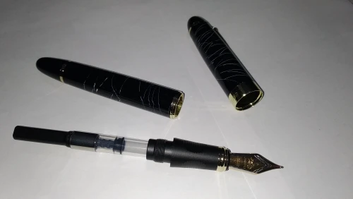 Whether you're a collector looking for a stylish addition to your stationary collection or a writer in need of a reliable everyday tool, the X450 frosted black and golden fountain pen is the perfect choice. Its elegant design and high-quality materials make it a standout choice for any writing enthusiast.