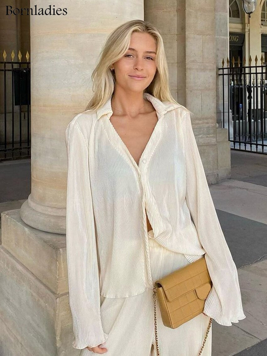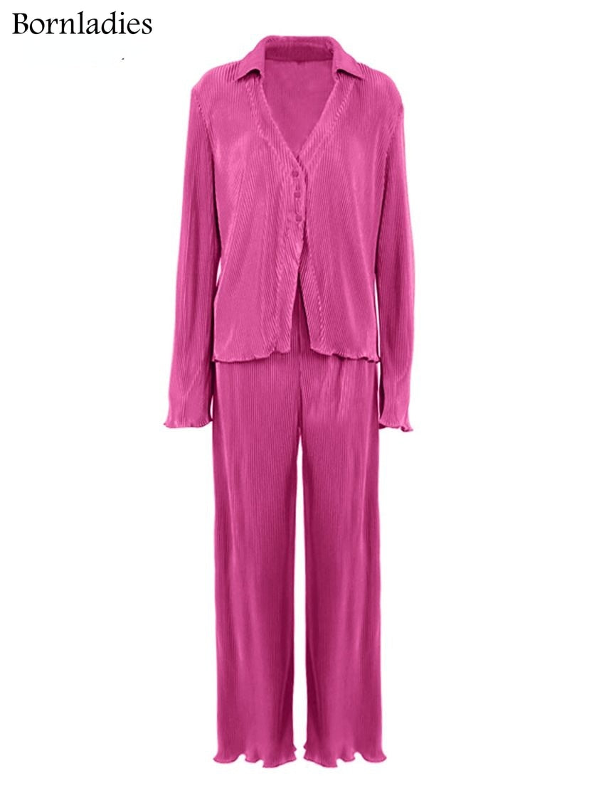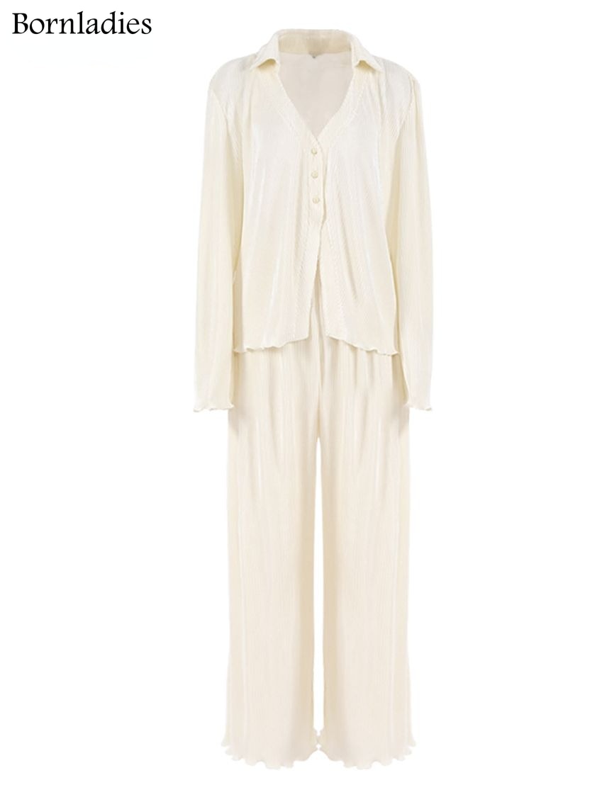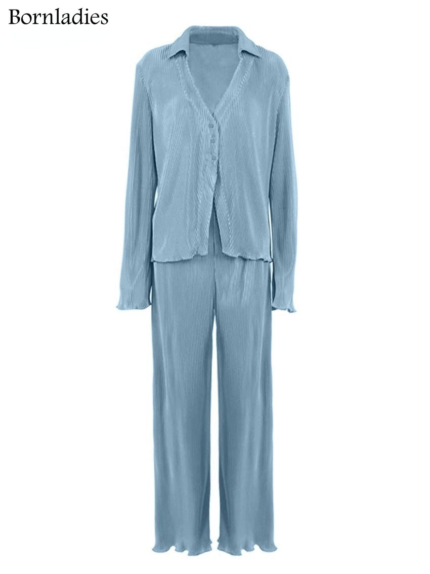 Green Vintage Flare Sleeve Blouse Casual Oversize Single Breasted Blouse Woman Summer Pants Set 2 Piece Outfit
