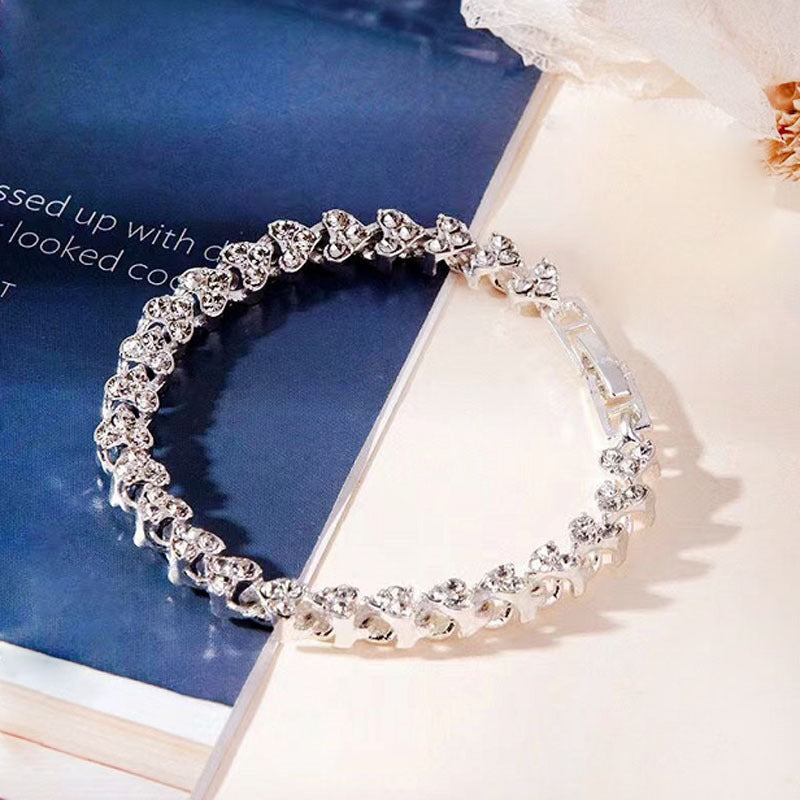 Heart-shaped Diamond Gold And Silver Plated Roman Bracelet