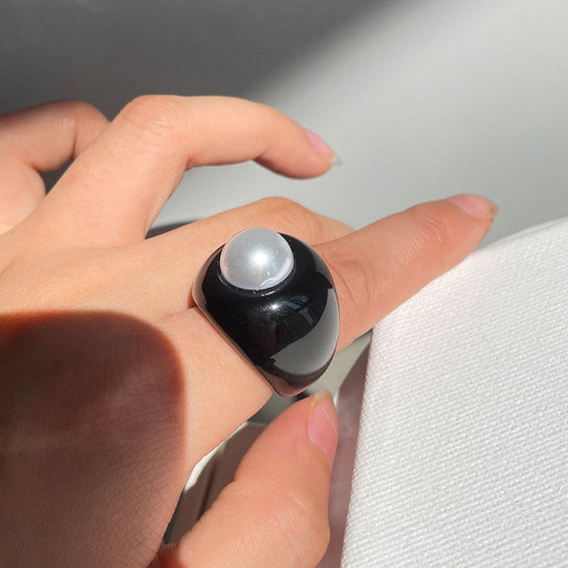 The hollow design of these rings gives them a unique and avant-garde look, perfect for those who love to stand out from the crowd. The advanced sense of style is evident in every detail, from the intricate metalwork to the simulated-pearl accents. These pearls add a touch of femininity and glamour to the overall design, making these rings truly special.