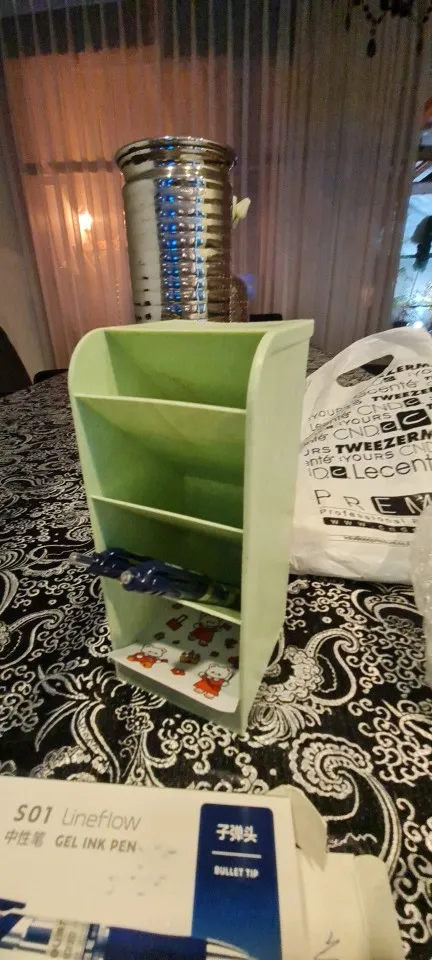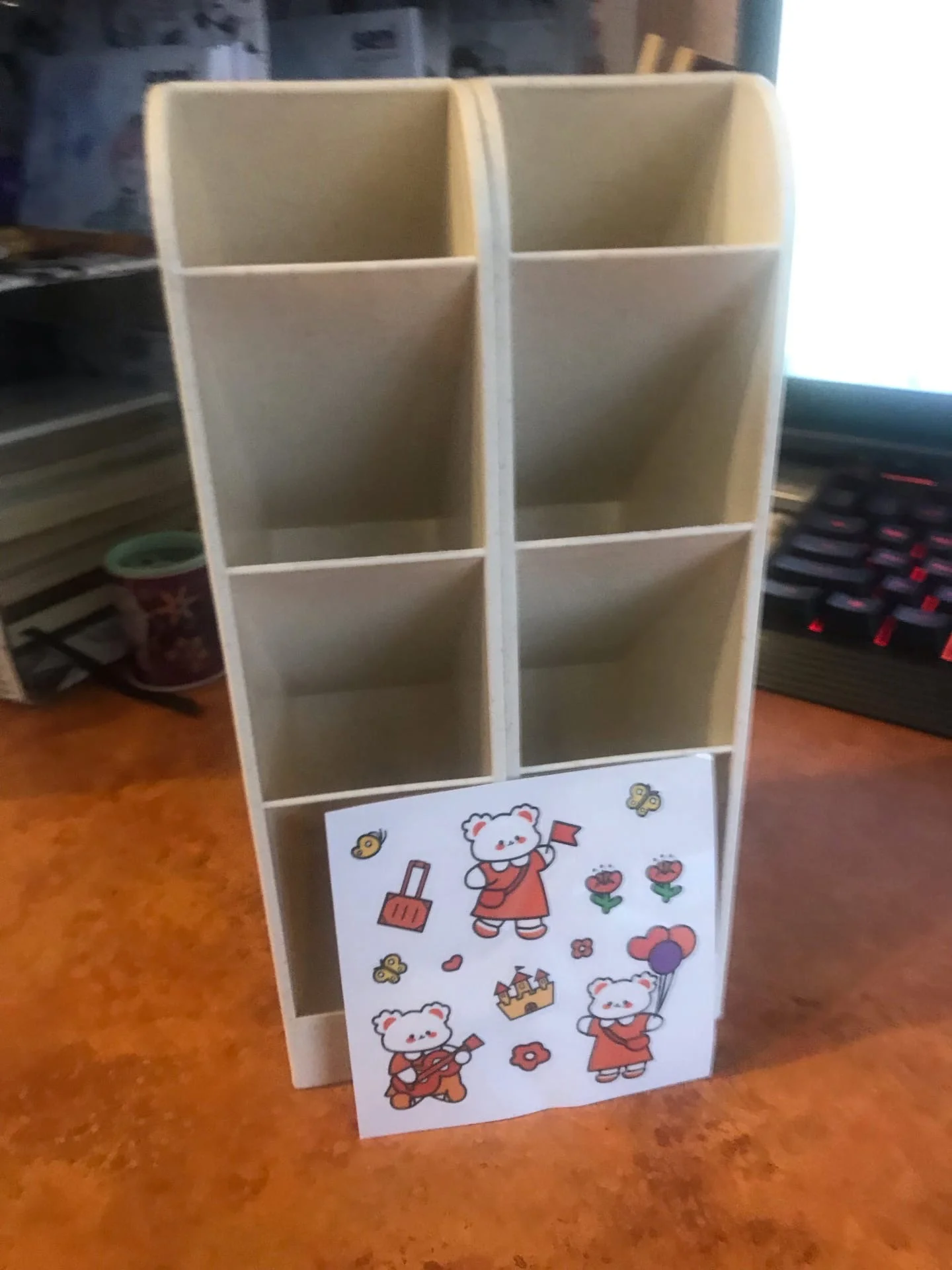 The item looks like's description. It is quite large. Arrived in Italy in 7 days. Together with the pen holder are and found also of stickers.