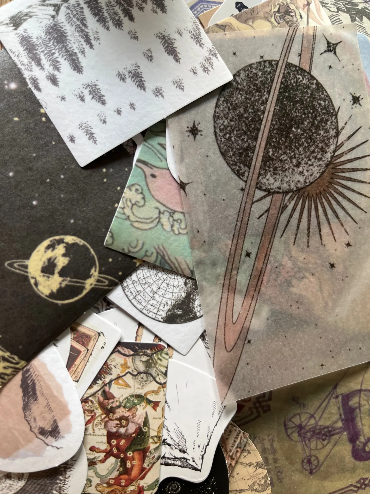 They are very cute. Different thickness papers, some very dense, almost like cardstock, others thin and some vellum. Foil stickers and washi varied, some are very large and other small. Much variety. The only thing that might regret, is that one the Bundles brought only 58 Pieces, even well, I am very satisfied with the purchase