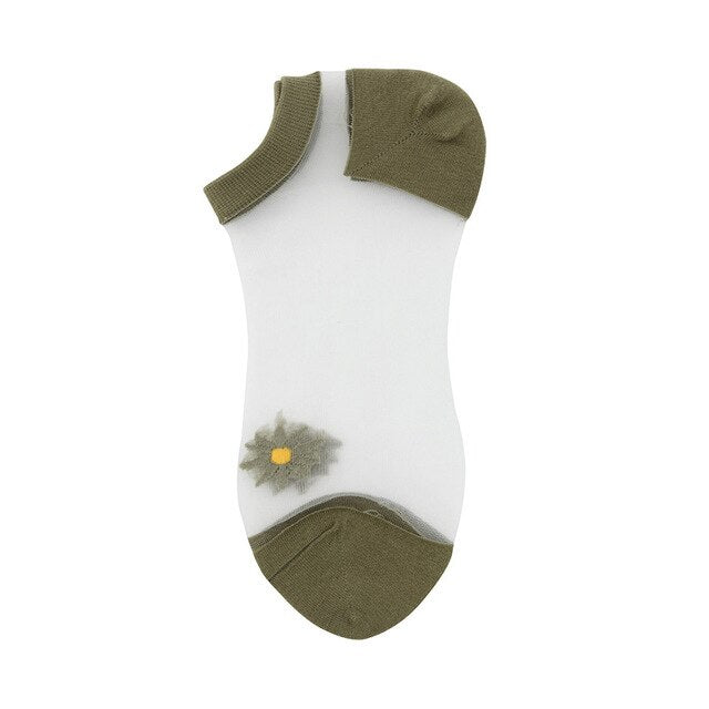 New Daisy Socks Women Transparent Thin Chiffon Socks Ankle Harajuku Short Flower Funny Socks Female Streetwear Calcetines