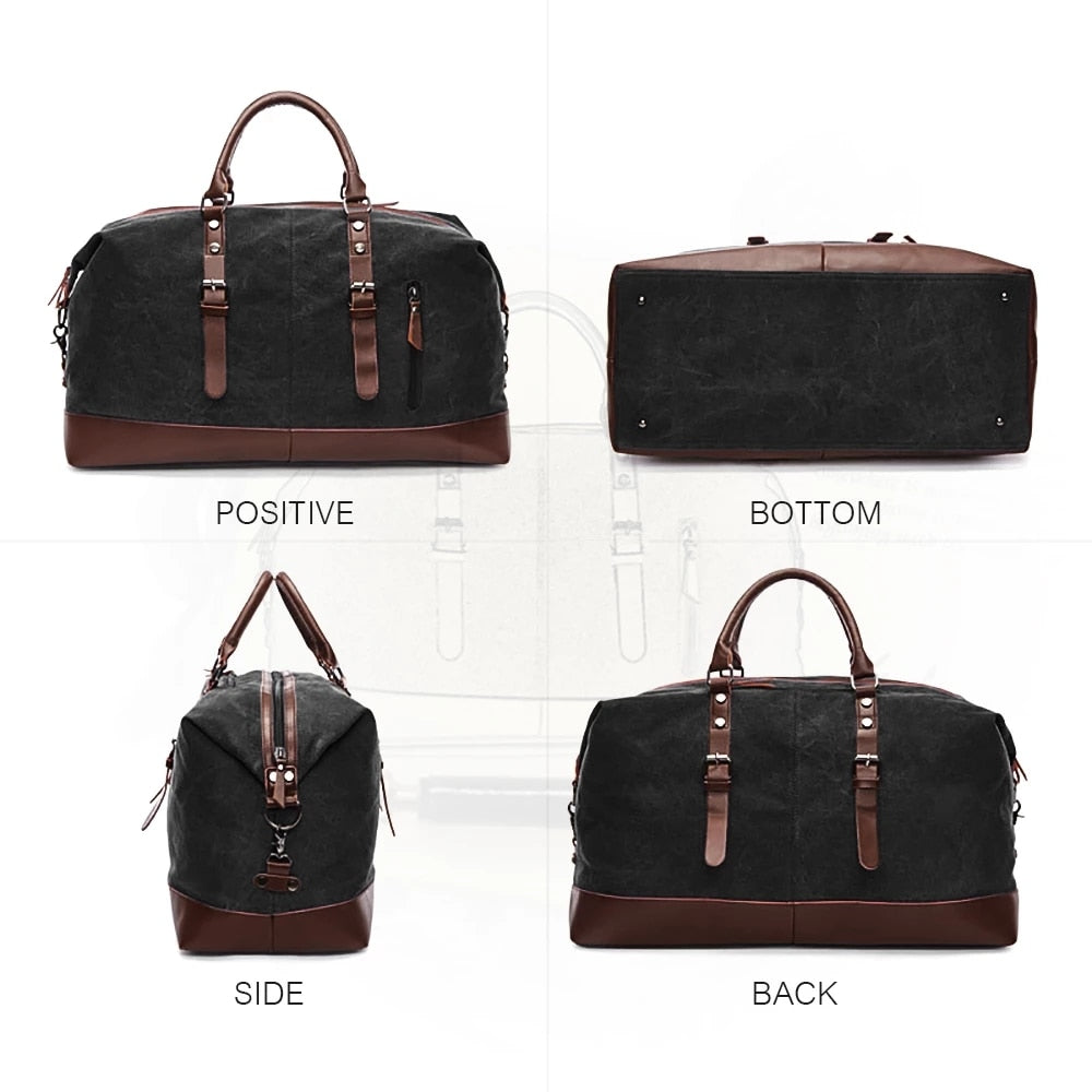 Looking for a spacious and durable travel bag? Look no further than our large capacity travel bags! Made from high-quality canvas and leather, our cut-proof overnight travel bags are perfect for any trip. With a soft handle and single shoulder strap, our travel duffle offers a comfortable and stylish way to carry your belongings. The retro design and solid pattern make this bag a trendy addition to any European or American style wardrobe. With multiple pockets and compartments, including an ID pocket and phone pocket, you can easily organize your items for quick access. Whether you're traveling for business or pleasure, our versatile travel bag is perfect for any occasion. The Markroyal 8655 Travel Bag is available in black, green, brown, blue, and gray. Don't settle for a flimsy and boring bag - upgrade to our stylish and functional travel bag today!
