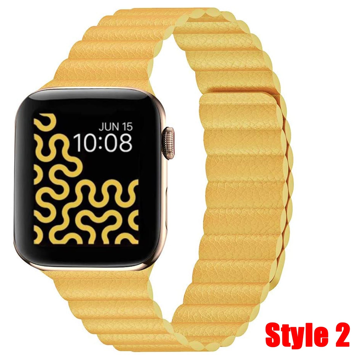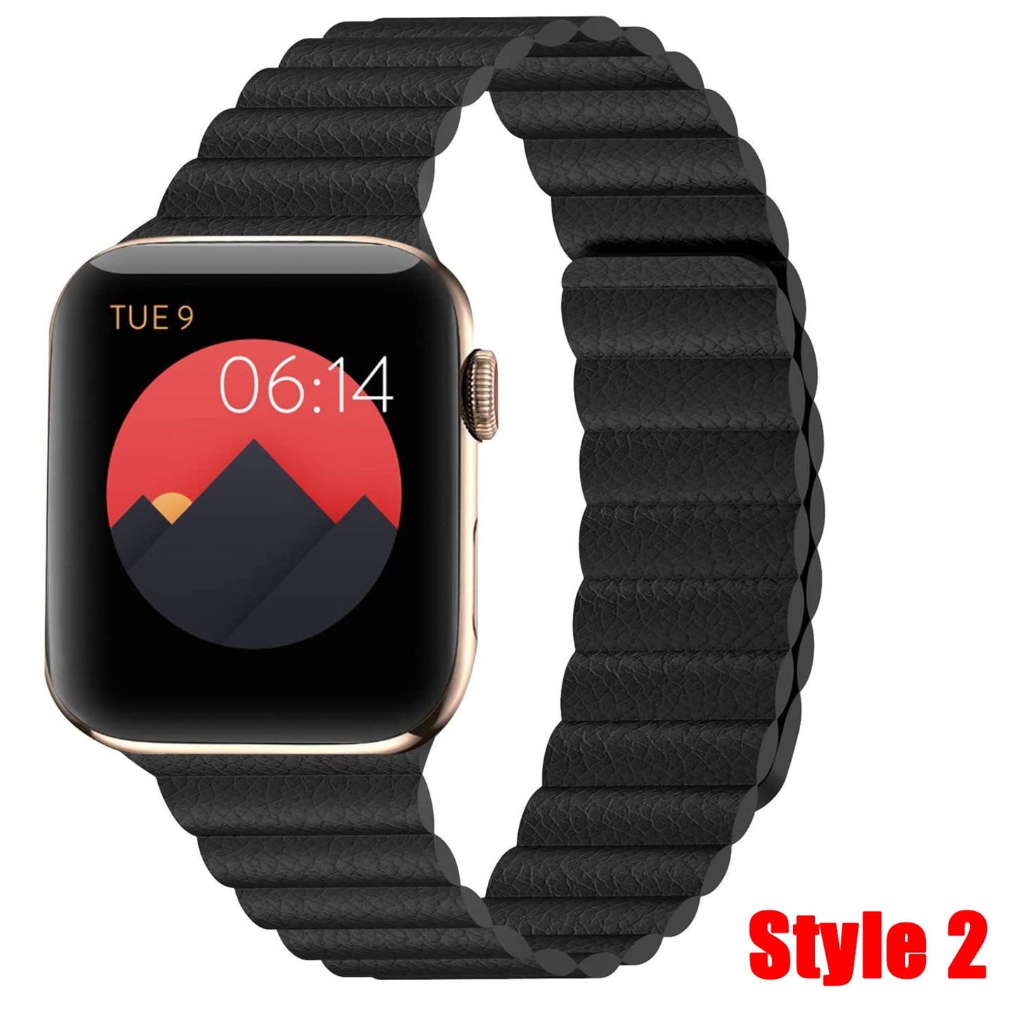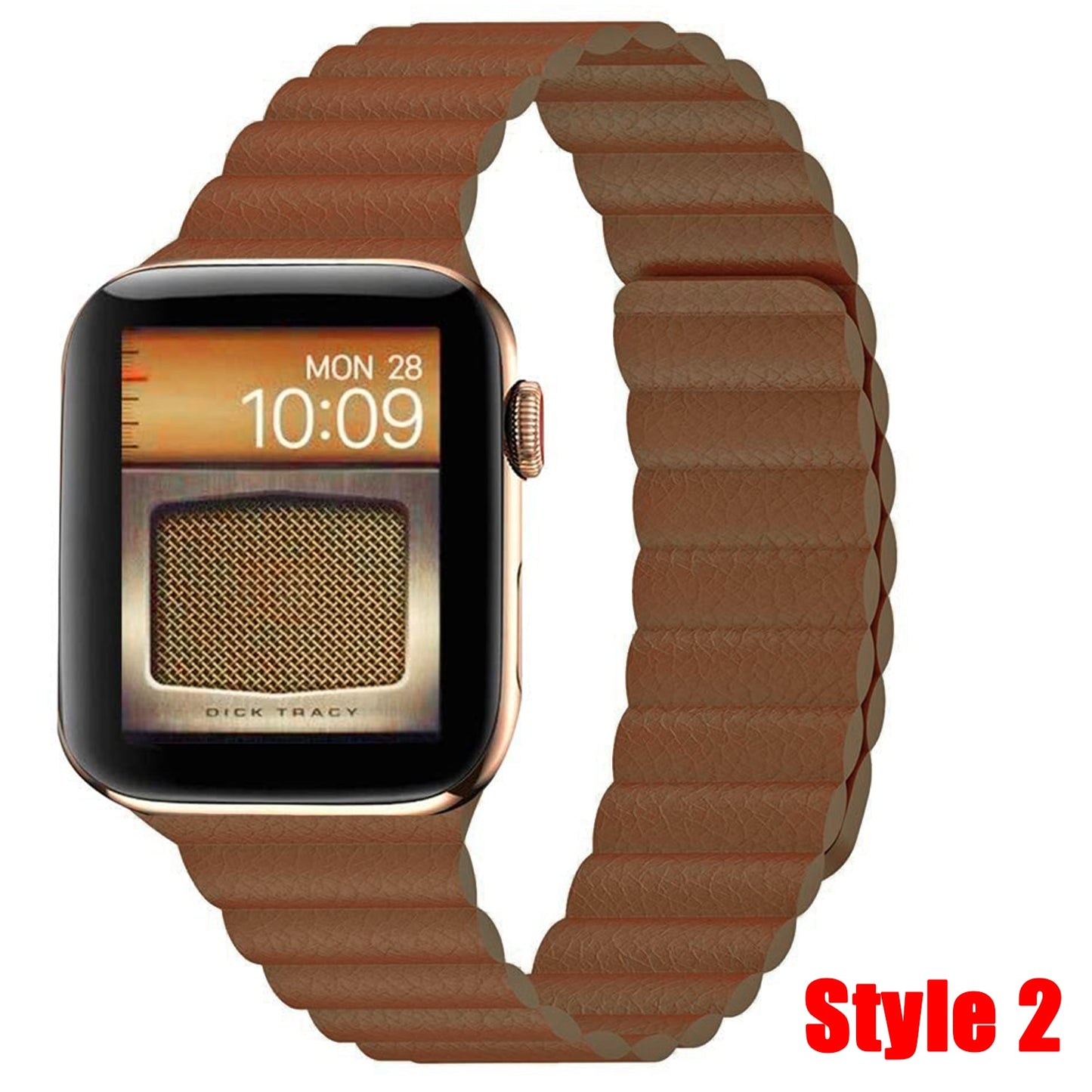 Looking for a stylish and functional watchband for your Apple Watch? Check out our Leather Link Loop Magnetic Strap watchband, designed specifically for the 44mm and 40mm iWatch Series 6, SE, 5, 4, 3, 2, and 1. With its sleek leather design and magnetic closure, this band is both comfortable and secure. Available in both 42mm and 38mm sizes, this watchband is perfect for anyone looking for a fashionable accessory to complete their Apple Watch look. Don't settle for a boring, generic watchband - upgrade to our Leather Link Loop Magnetic Strap for the ultimate in style and functionality. Order now and experience the difference for yourself!