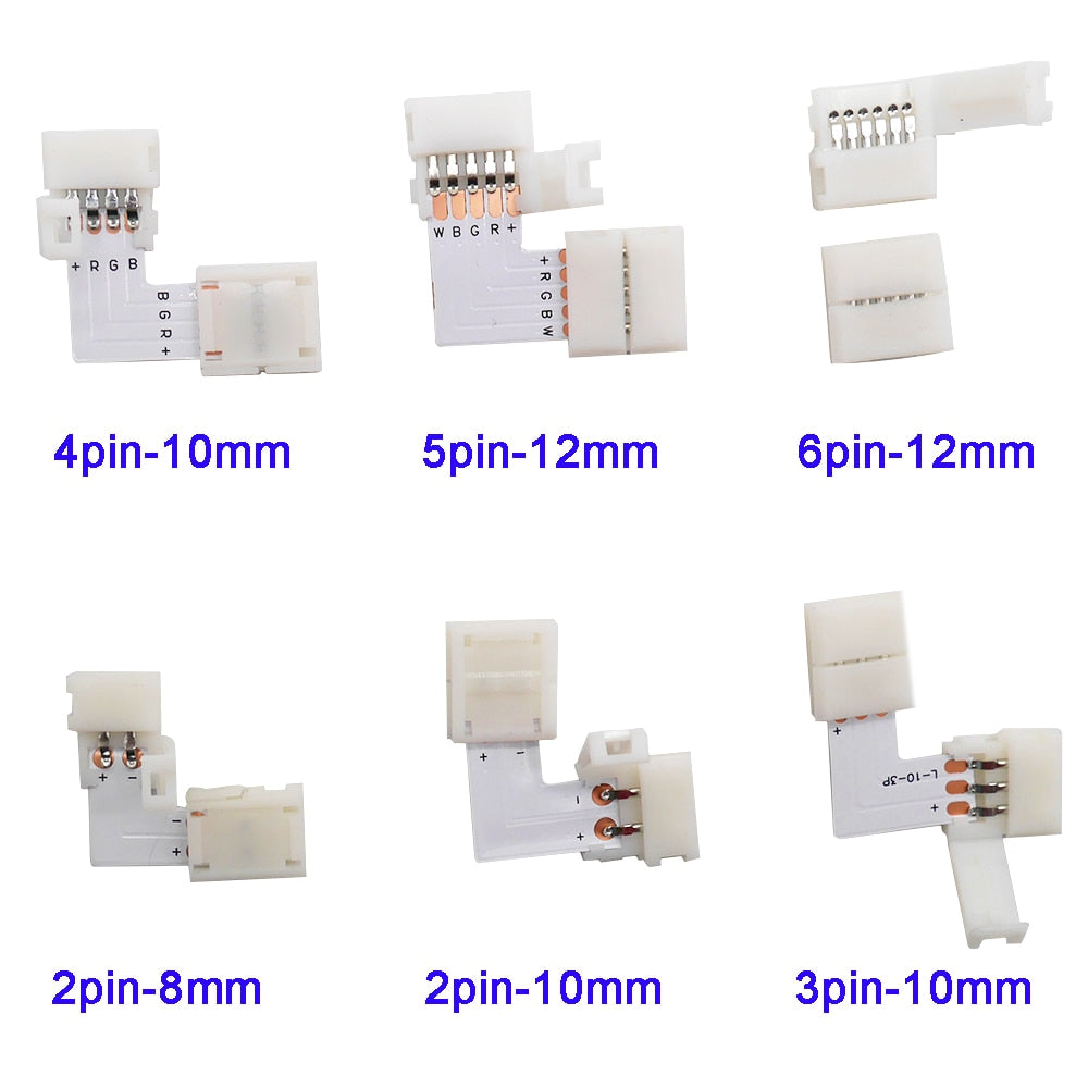 L Shape 2pin 3pin 4pin 5pin 6pin LED Connector For connecting corner right angle 5050 RGB RGBW 3528 ws2812 LED Strip