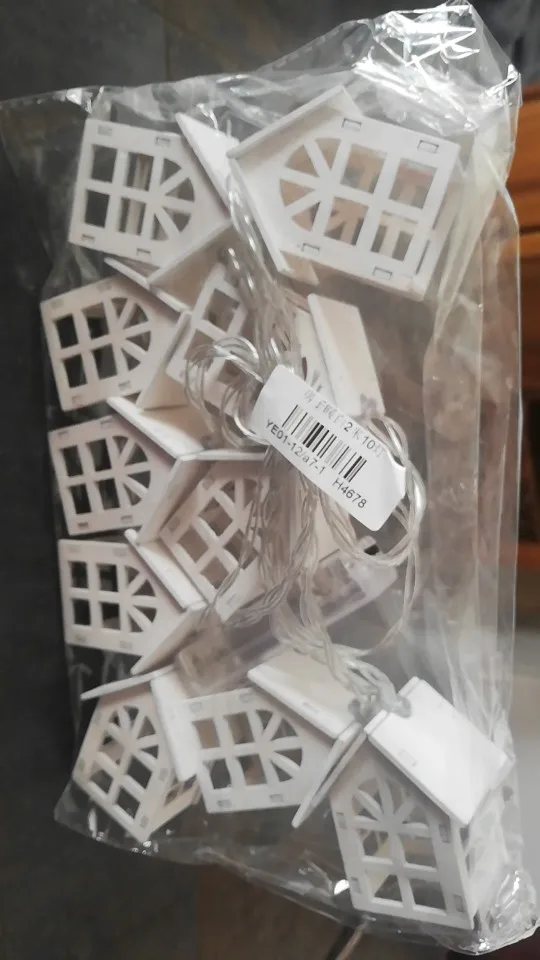 This 2M 10 LED Fairy Wood House Light String Garland is perfect for adding a festive touch to your Christmas tree or any other holiday decor. The wooden house lights add a cozy and rustic feel to your home, and the LED lights provide a warm and inviting glow. This string garland is also great for weddings, parties, and New Year's celebrations. The lights are not customized, but they are easy to set up and use. There is no wholesale or gift box option available, but the model number is new and ready to brighten up your holiday season. Get ready for Navidad, Kerst, Noel, and any other holiday with these charming home lamps! With a length of 2 meters, you'll have plenty of string to decorate any space. Don't miss out on this beautiful and unique Christmas ornament.