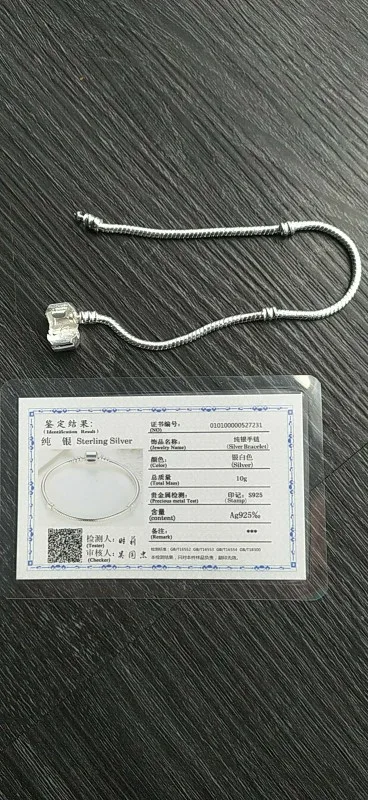 Certificate 100% Original 925 Sterling Silver Snake Chain DIY Charm Bracelet for Women Gift Silver 925 Jewelry LHB925