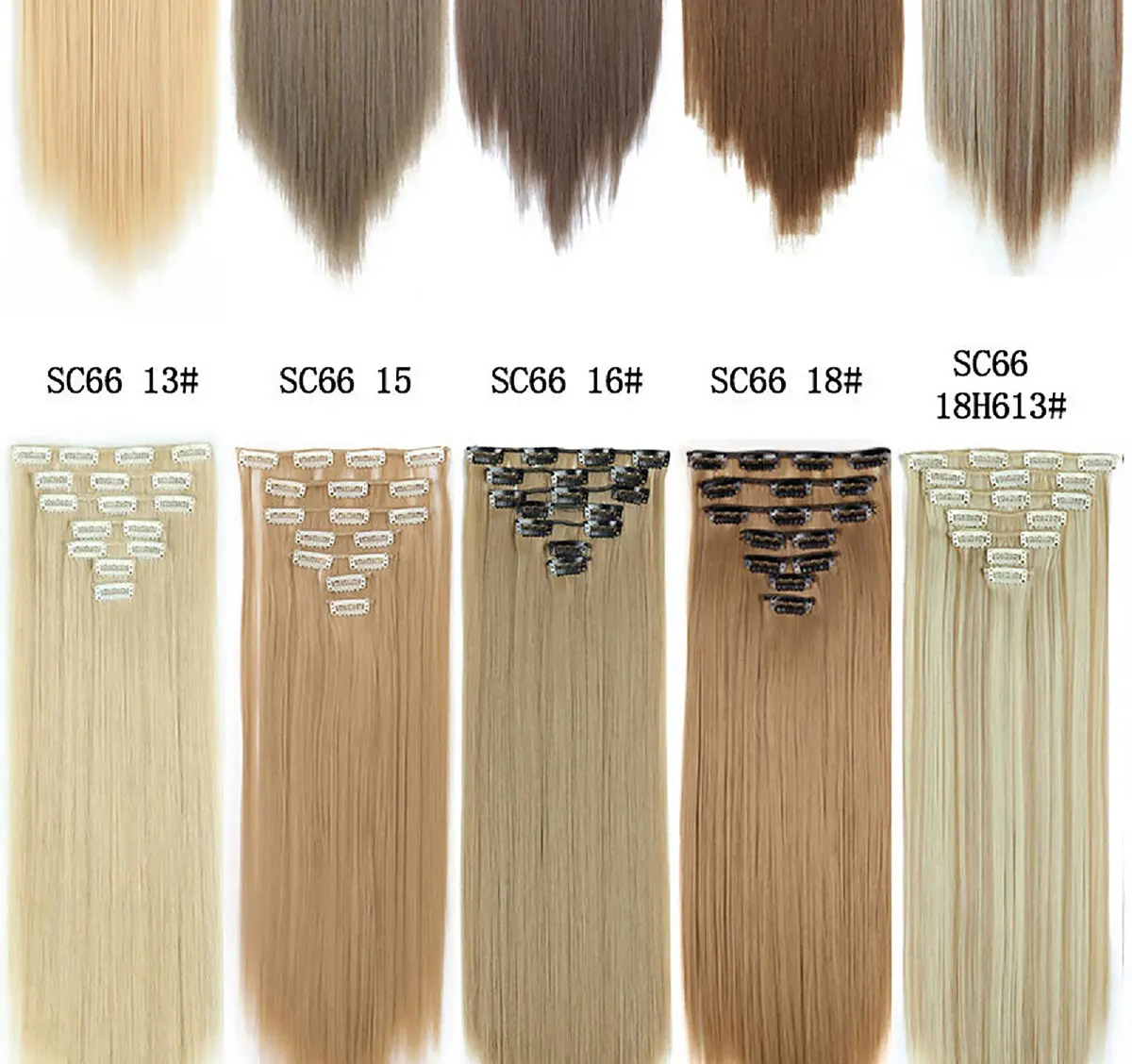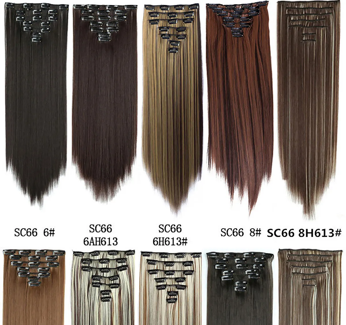 Long Straight Synthetic Hair 16 Clips 140G Extensions Clips in High Temperature Fiber Black Brown Hairpiece