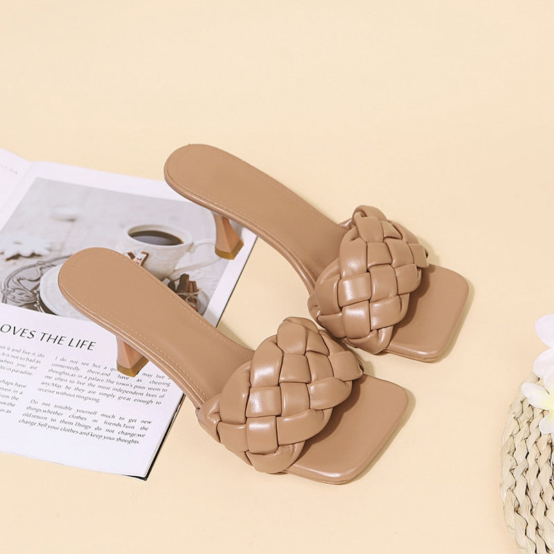Luxury Slides Women 8cm High Heels Mules Fetish Pumps Individual Weave Leisure Blue Office Ladies Prom Slippers Women's Shoes