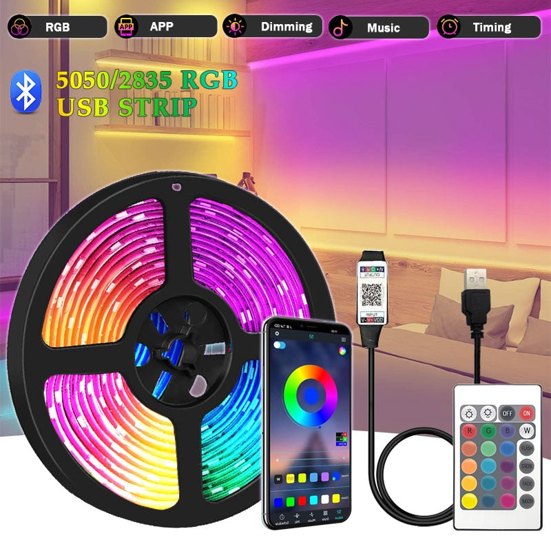 Luz Led Strip Usb 5V Rgb 5050 2835 20M Led Ribbon For Bedroom 5M Tv Backlight Lamp With Bluetooth Controller Colorful Diode Tape