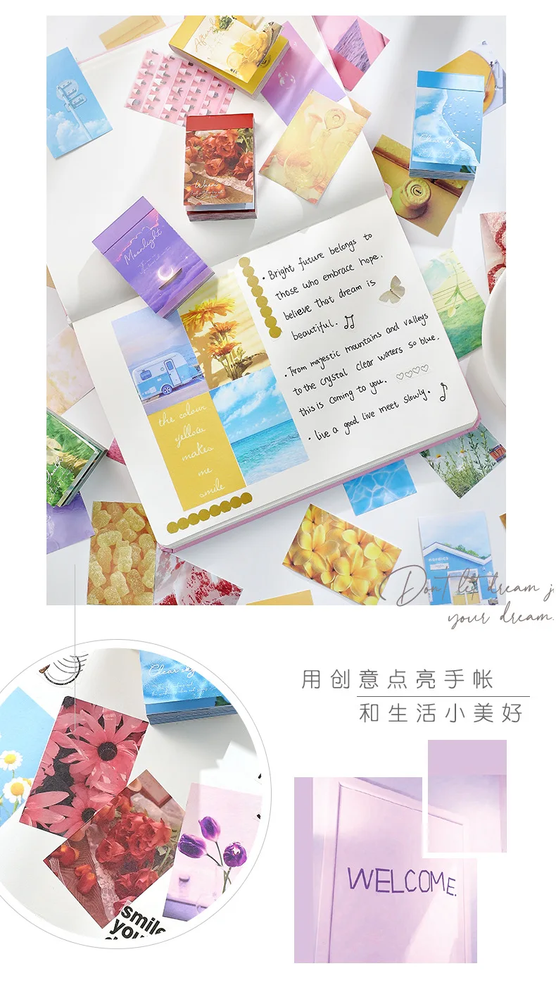 50pcs/lot Memo Pads Material Paper Rainbow full of eyes Junk Journal Scrapbooking Cards Retro Background Decoration Paper